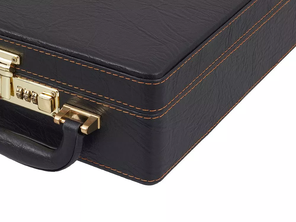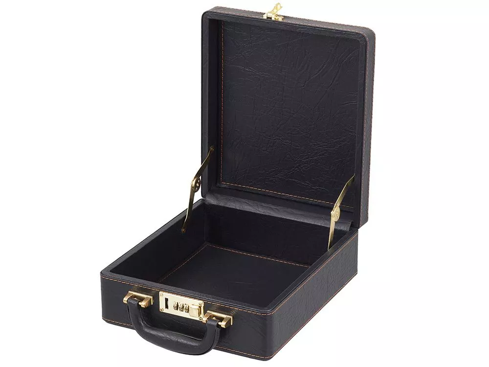 Дипломат с кодовым замком – стиль и безопасность. Премиальный дипломат с кодовым замком – отличный выбор для ценных подарков. Благородная кожа и аккуратная строчка создают впечатление дорогого аксессуара, а защитный механизм гарантирует сохранность содержимого. Размеры: 42 × 33 × 12 см (внутри 40 × 28,3 × 10 см)