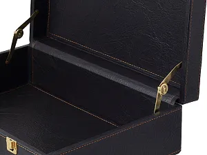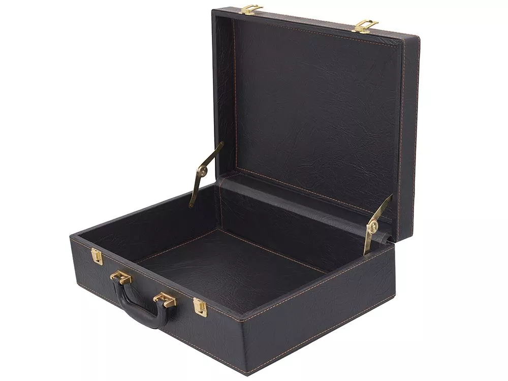 Дипломат для VIP-подарков с двумя замками/ Роскошный кожаный дипломат с двойной защитой – два замочка надежно сохранят содержимое. Вместительный внутренний объем подойдет для дорогих презентов, а изящная строчка подчеркнет статус подарка. Размеры: 45 × 35 × 14 см (внутри 43 × 30,4 × 12 см)