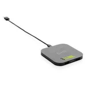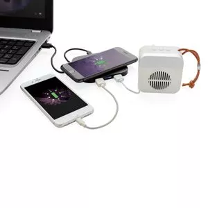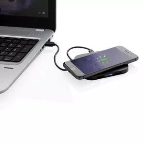 Док-станция для беспроводной зарядки подсоединяется к компьютеру через разъем USB и подходит для последнего поколения мобильных устройств с ОС Android. Более ранние модели и мобильные устройства с iOS можно подзарядить, подключив их кабель к любому из двух USB-портов, либо дополнив устройства приемником для беспроводной зарядки. Корпус станции изготовлен из прочного ABS-пластика. Не подходит для синхронизации.