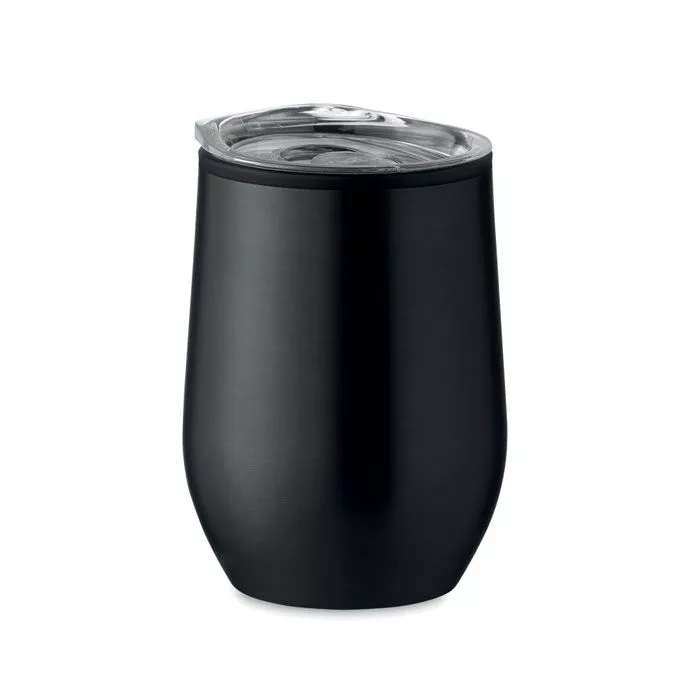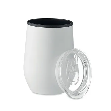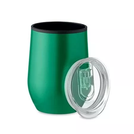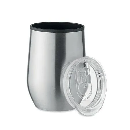 Чашка с двойными стенками из нержавеющей стали с внутренней полипропиленовой и прозрачной PS крышкой. Емкость: 350 мл.