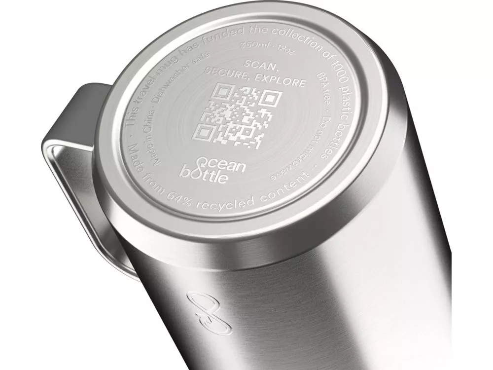 Дорожная кружка Ocean Bottle объемом 350 мл имеет двойную изоляцию стенок, что позволяет сохранять напитки горячими до четырех часов, и холодными до десяти часов. Эргономичная ручка позволяет прикрепить его к сумкам или другим предметам, чтобы оптимизировать пространство для хранения и грузоподъемность. Каждая дорожная кружка полностью углеродно-нейтральна и позволяет заменить 1000 пластиковых бутылок для улучшения условий жизни прибрежных сообществ. Кружка на 90% изготовлена из переработанной нержавеющей стали и других переработанных материалов. Поставляется в подарочной коробке из переработанного картона, полученного из ответственных источников. Recycled stainless steel.