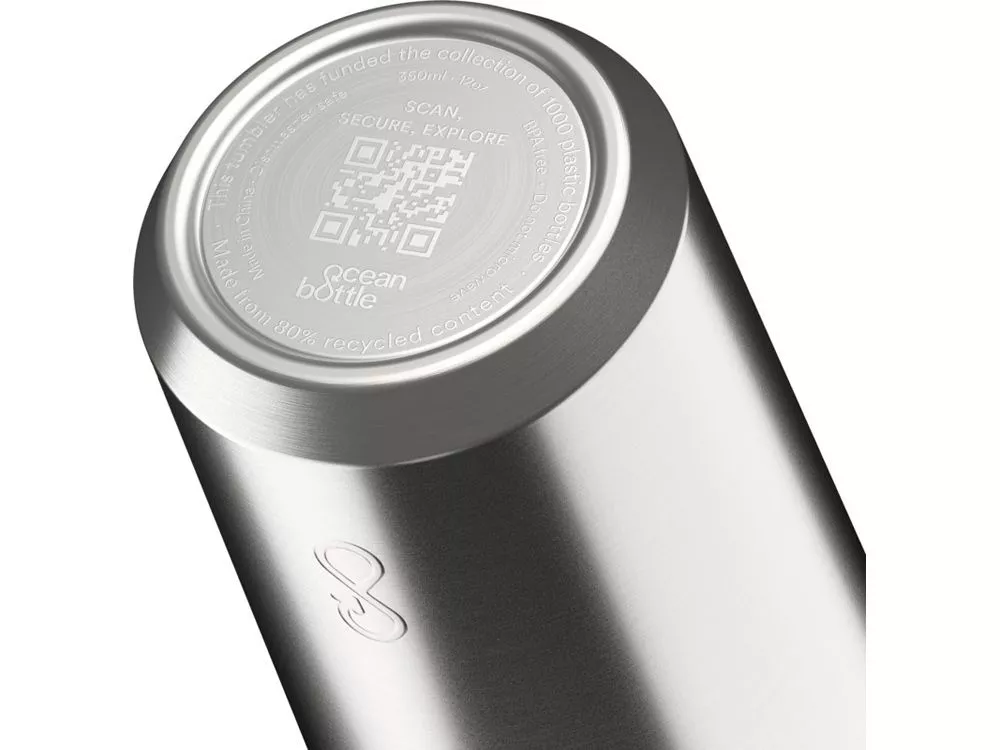 Стакан Ocean Bottle объемом 350 мл двойную изоляцию стенок, позволяющую сохранять напитки горячими до четырех часов и холодными до десяти часов. Он легко помещается в большинство кофемашин, а также в большинство автомобильных подстаканников. Каждая дорожная кружка полностью углеродно-нейтральна и позволяет заменить 1000 пластиковых бутылок для улучшения условий жизни прибрежных сообществ. Стакан на 90 % изготовлен из переработанной нержавеющей стали и других переработанных материалов. Поставляется в подарочной коробке из переработанного картона, полученного из ответственных источников. Recycled stainless steel.