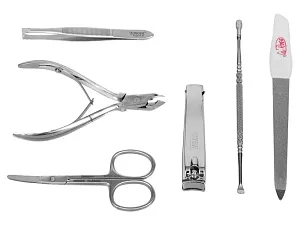 Дорожный несессер. В набор входит: - несессер из искусственной кожи - кусачки - книпсер - палочка для чистки ушей - маникюрные ножнички - пинцет - пилочка