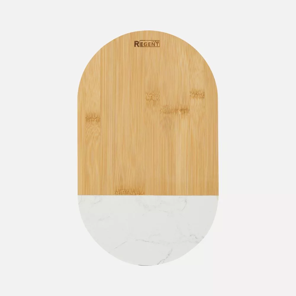 Дизайн в экологичном стиле с нетривиальным сочетанием мрамора и бамбука гармонично впишется в любой интерьер и добавит ему естественности. Доска подходит как для нарезки, так и для сервировки, она легко моется и не впитывает запахи.