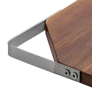 Качественная разделочная доска — необходимый предмет на любой кухне. Доска выполнена из экологически чистого и прочного материала — древесины акации. Она обладает высокой твердостью, водоотталкивающими свойствами и не впитывает запахи. Для удобства размещения на стене в верхнем углу предусмотрен подвес из металла.Доска поставляется в пакете.