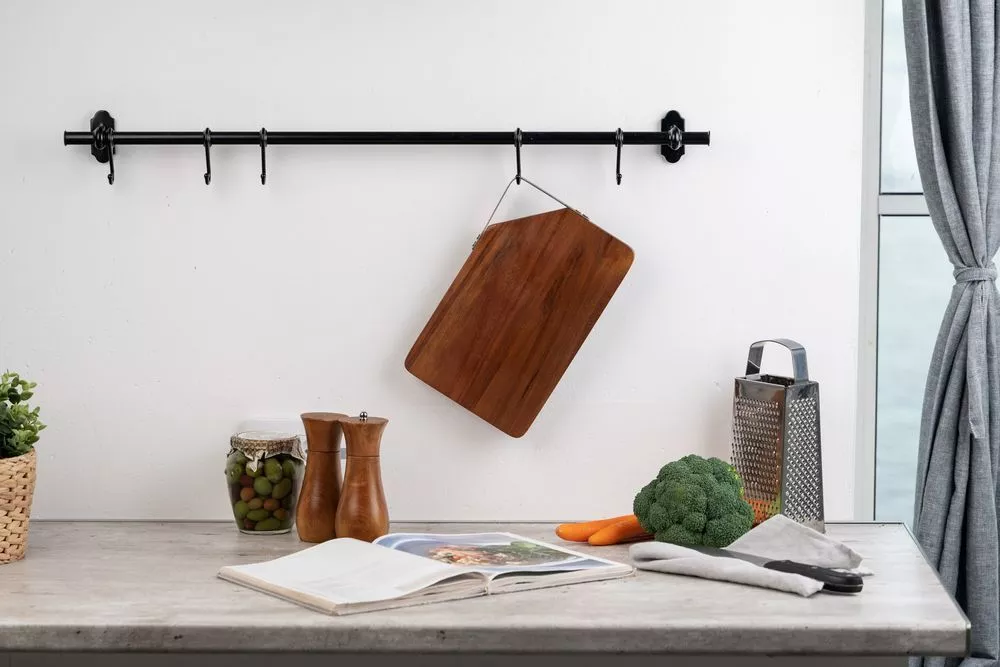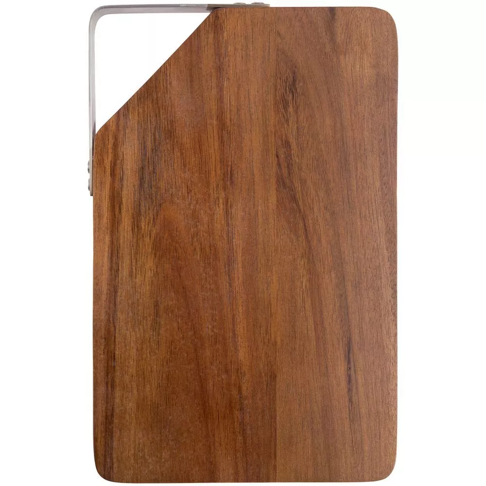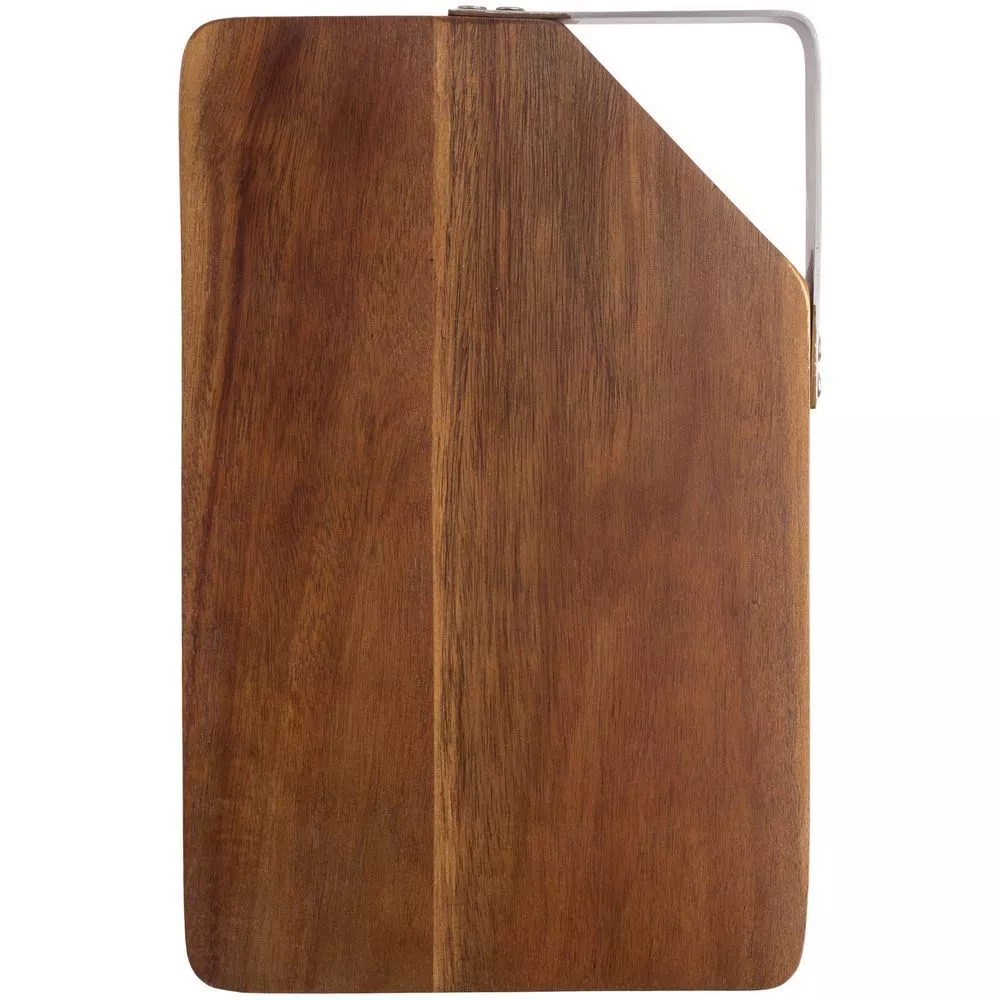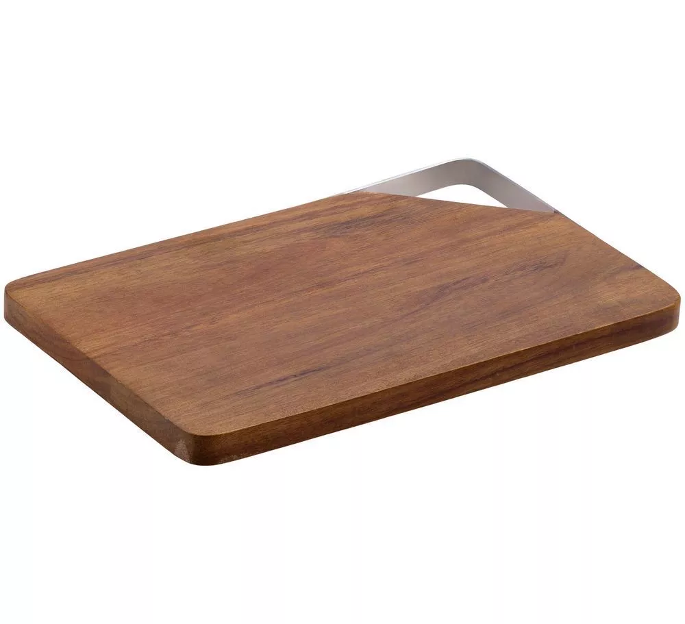 Качественная разделочная доска — необходимый предмет на любой кухне. Доска выполнена из экологически чистого и прочного материала — древесины акации. Она обладает высокой твердостью, водоотталкивающими свойствами и не впитывает запахи. Для удобства размещения на стене в верхнем углу предусмотрен подвес из металла.Доска поставляется в пакете.