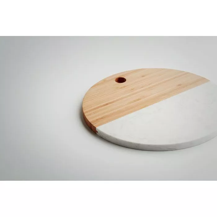 Сервировочная доска из мрамора и бамбука. Круглая форма