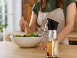 Дозатор для масла и уксуса Balsamic 2-в-1: удобно, стильно, функционально. Идеальное решение для тех, кто ценит вкус и эстетику на кухне. Этот умный дозатор оснащён двумя отдельными емкостями для масла и уксуса, которые можно использовать как по отдельности, так и смешивать одним поворотом механизма. Стильный и современный аксессуар, который украсит любую сервировку. - 2 в 1: две независимые ёмкости в одном корпусе — для масла и уксуса, каждая по 95 мл - Функция смешивания: по желанию — подача ингредиентов отдельно или в идеальных пропорциях вместе - Простота использования: интуитивный поворотный механизм - Современный дизайн: лаконичная форма, гармонично смотрится как на кухне, так и на праздничном столе Идеален для заправки салатов и маринадов.