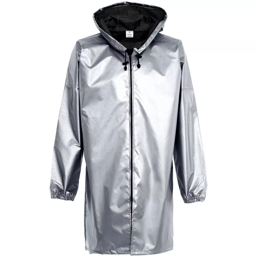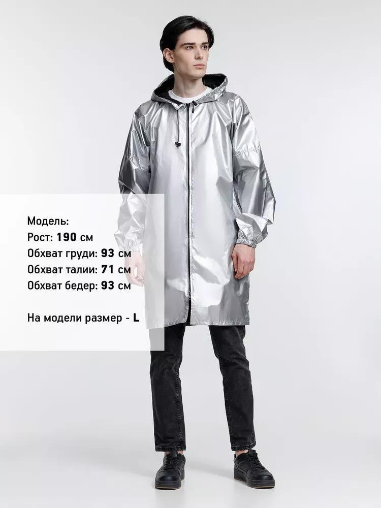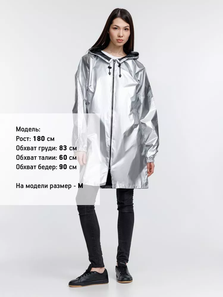 Плащ-дождевик из ткани таффета на молнии с капюшоном. Складывается в мешочек — удобно брать с собой.