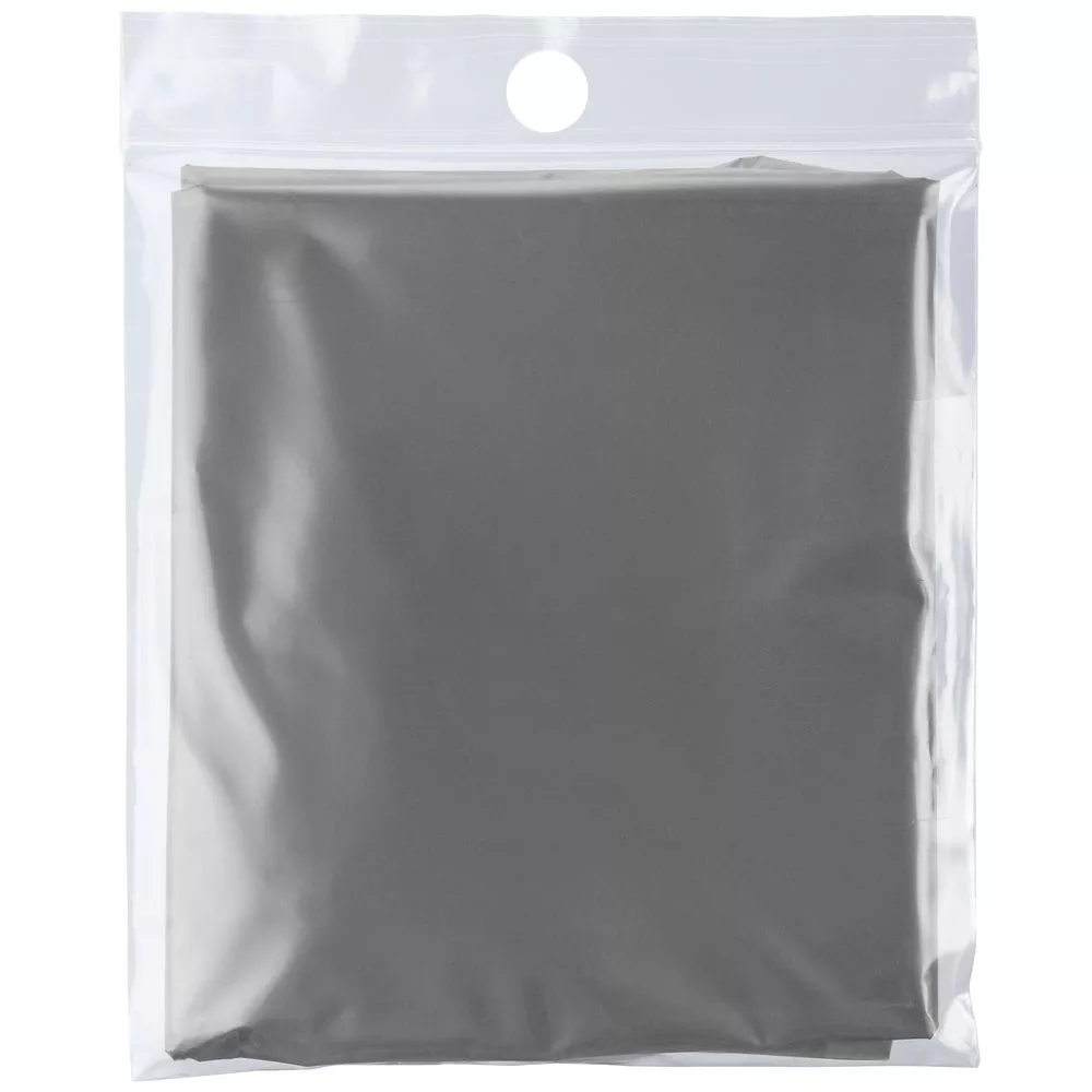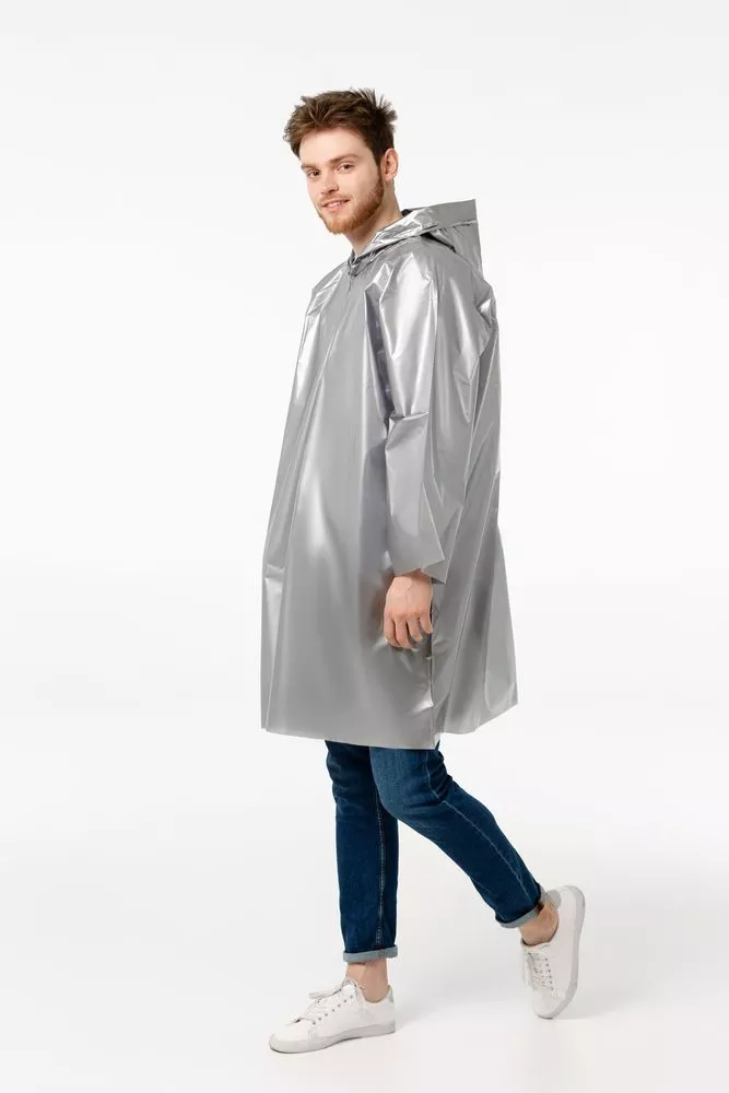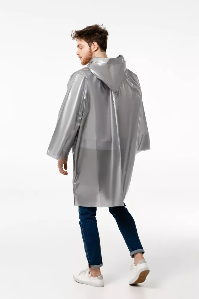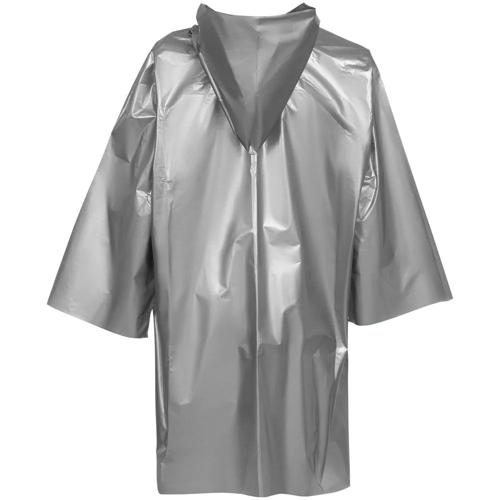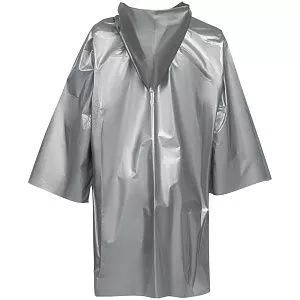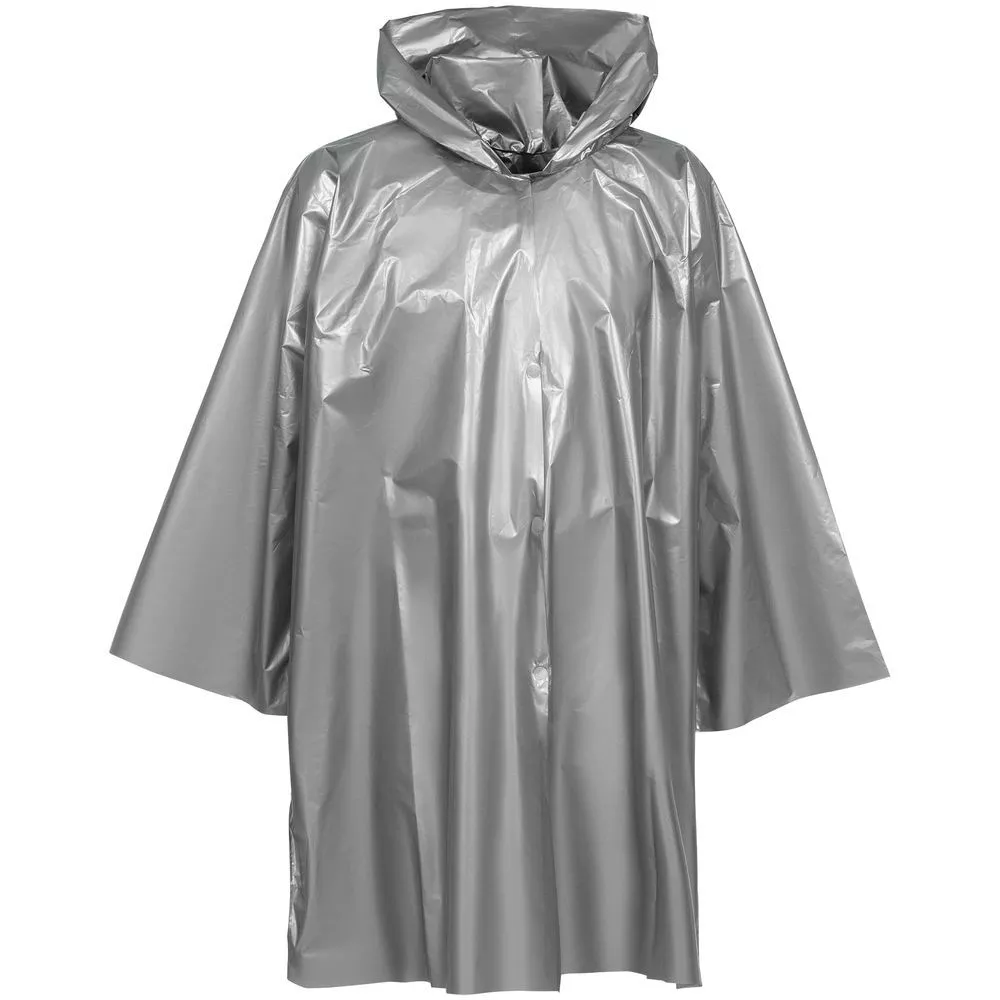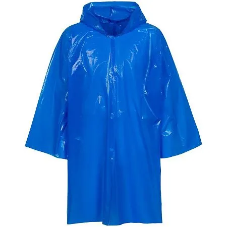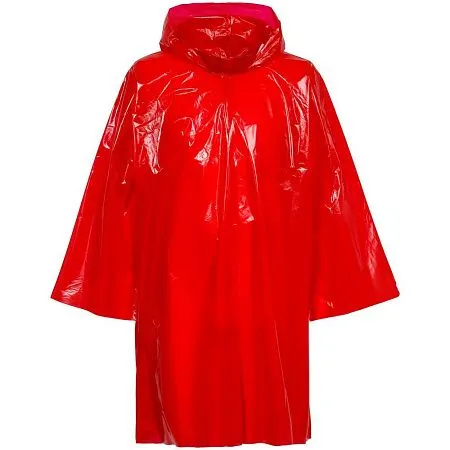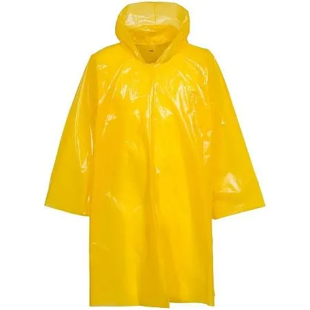 Дождевик-плащ с капюшоном и длинным рукавом из плотного полиэтилена.