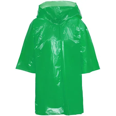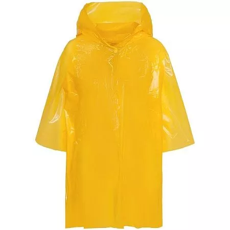 Дождевик-плащ с капюшоном и длинным рукавом из полиэтилена высокого давления (ПВД). Застегивается на липучку.