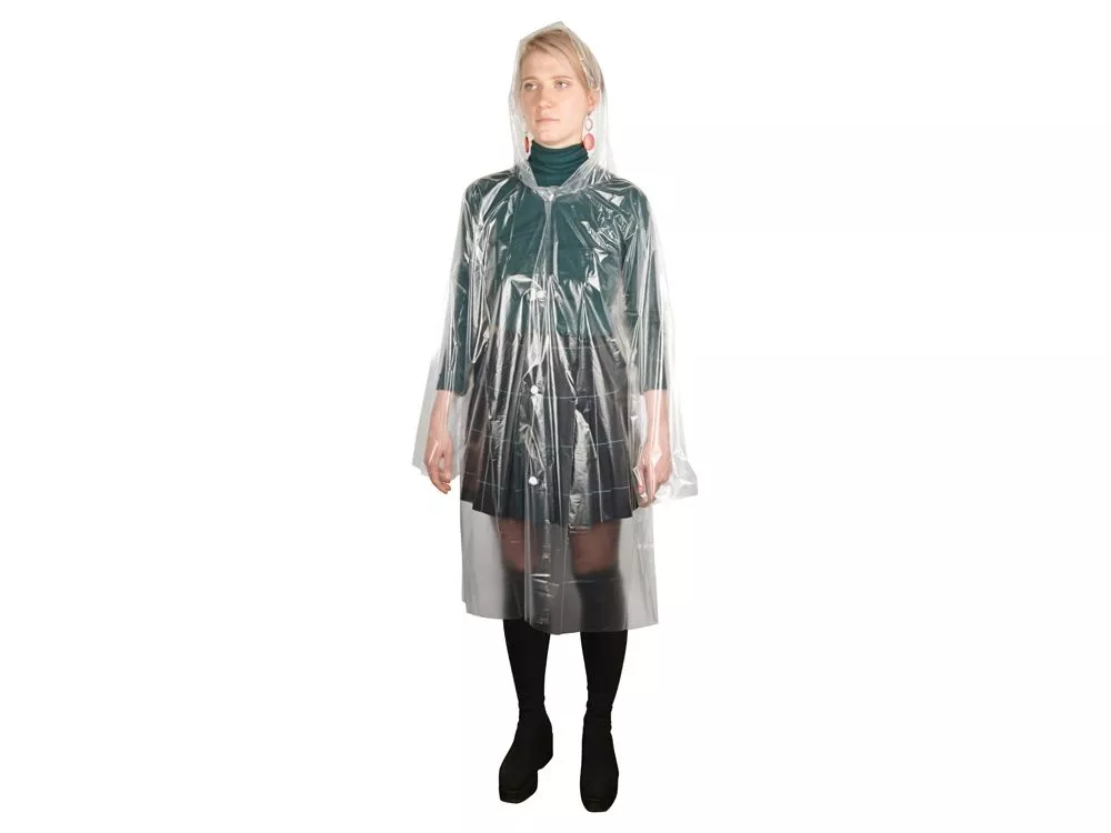 Многоразовый дождевик-плащ отлично подходит как для повседневного использования так и для масштабных мероприятий. Дождевик с длинным рукавом и капюшоном, застегивается на кнопки-липучки, выполнен из плотного полиэтилена, поставляется в прозрачном пакете с клапаном. Дождевик единого размера. Цифровая печать (наклейка на белой пленке) на данный товар осуществляется бесплатно. Оплачивается только настройка оборудования в размере 800 рублей на весь тираж.
