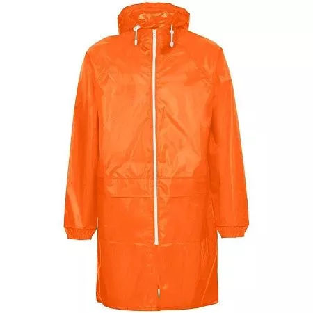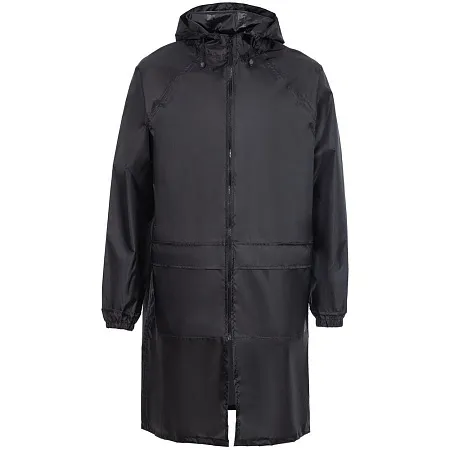 Плащ-дождевик на молнии с капюшоном и рукавами реглан. Ветрозащитные манжеты на рукавах.