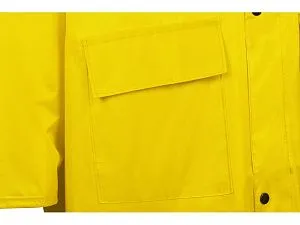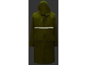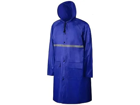 Длинный дождевик выполнен из полиэстера с водоотталкивающей пропиткой. Застегивается на молнию, поверх которой — планка на кнопках, что дополнительно защищает от ветра и промокания. Посадку капюшона можно регулировать при помощи шнурка, ширина рукава регулируется кнопкой. Светоотражающая тесьма на груди и спине делает человека в плаще заметным даже в темное время суток. Вместительные накладные карманы защищены сверху клапаном. Дополнительная проклейка швов дождевика обеспечивает большую степень водонепроницаемости. - водонепроницаемость обеспечивается водоотталкивающей пропиткой материала и дополнительной проклейкой швов - светоотражающие элементы делают человека заметным в темное время суток - вместительные накладные карманы