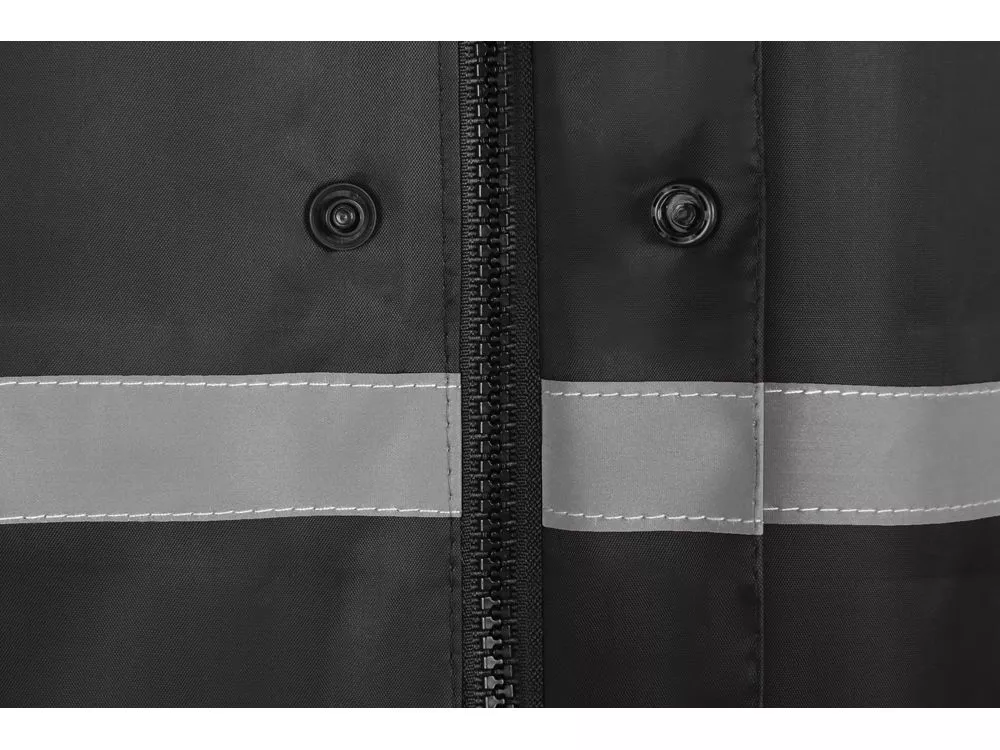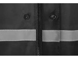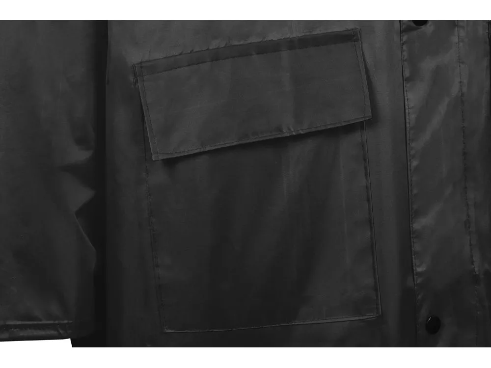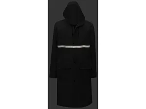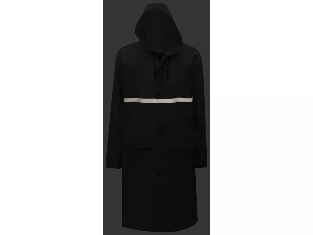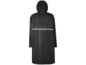 Длинный дождевик выполнен из полиэстера с водоотталкивающей пропиткой. Застегивается на молнию, поверх которой — планка на кнопках, что дополнительно защищает от ветра и промокания. Посадку капюшона можно регулировать при помощи шнурка, ширина рукава регулируется кнопкой. Светоотражающая тесьма на груди и спине делает человека в плаще заметным даже в темное время суток. Вместительные накладные карманы защищены сверху клапаном. Дополнительная проклейка швов дождевика обеспечивает большую степень водонепроницаемости. - водонепроницаемость обеспечивается водоотталкивающей пропиткой материала и дополнительной проклейкой швов - светоотражающие элементы делают человека заметным в темное время суток - вместительные накладные карманы