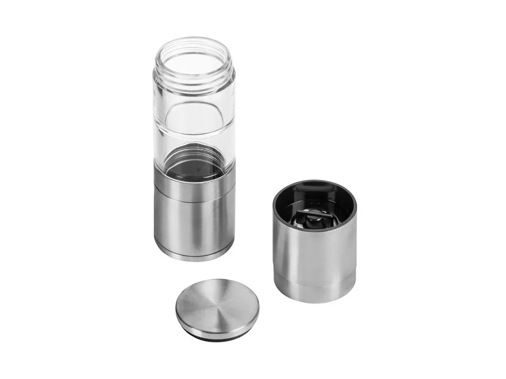 Главный плюс мельницы Twin — сразу два отсека для специй, благодаря чему вы сможете сэкономить место на кухне, объединив в одном устройстве сразу два вида приправ. Керамические жернова не боятся коррозии, а высококачественная нержавеющая сталь обеспечивает изделию длительный срок жизни. Кроме того, есть и возможность управления степенью помола при помощи тумблера. - экономия места на кухне - качественные материалы - два несообщающихся отсека для специй - регулирование грубости помола Гравировка (оптоволоконный лазер) (Без чернения) на данный товар осуществляется бесплатно. Оплачивается только настройка оборудования в размере 950 рублей на весь тираж.