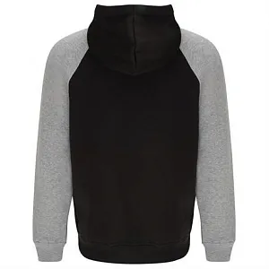 Двухцветное Толстовка унисекс. Капюшон с запахом спереди на горловине, металлическими люверсами и контрастной внутренней частью и шнурками. Контрастные рукава реглан. Карман-кенгуру. Манжеты и низ в рубчик 1 x 1 с эластаном.* Съемная этикетка.