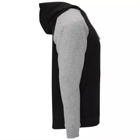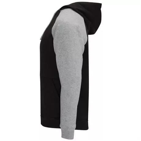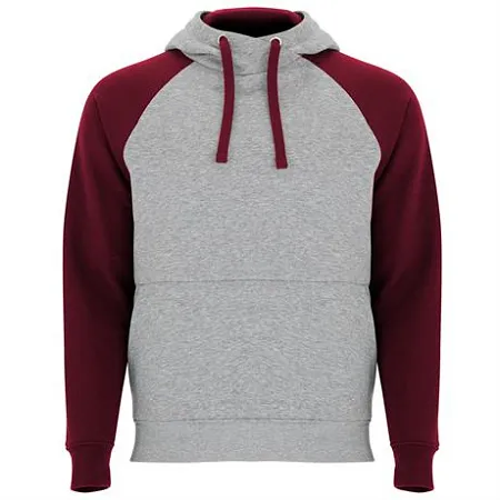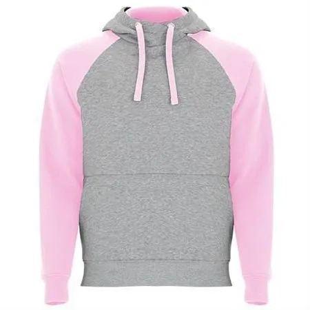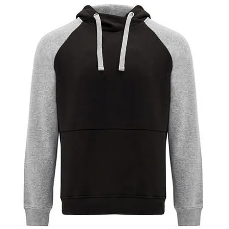 Двухцветное Толстовка унисекс. Капюшон с запахом спереди на горловине, металлическими люверсами и контрастной внутренней частью и шнурками. Контрастные рукава реглан. Карман-кенгуру. Манжеты и низ в рубчик 1 x 1 с эластаном.* Съемная этикетка.