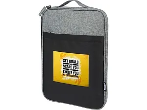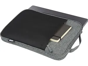 Двухцветный чехол для ноутбука снаружи изготовлен из 100% переработанных материалов по стандарту GRS и имеет компактное защищенное отделение, которое подходит для большинства 14-дюймовых ноутбуков. Он также имеет передний карман на молнии для документов, блокнотов и небольших аксессуаров, а также ручку для переноски, что идеально подходит для ежедневных поездок.