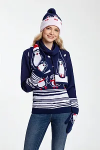 Пингвины отказались от неба, но зато покорили море. В их распоряжении почти целый континент и Южный полюс, а еще — сердца миллионов поклонников. Линейка Merry Fellow посвящена компании милых антарктических жителей: где-то неуклюжих и нерасторопных, а где-то — ловких и сообразительных. Дружные пингвины из коллекции создадут по-настоящему зимнее настроение, а еще напомнят, что нет ничего невозможного, если держаться друг за друга.Джемпер с круглым вырезом и жаккардовым рисунком.