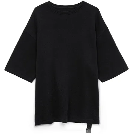 Siluetti Volumica — плотный вязаный джемпер-футболка прямого кроя с круглым вырезом и спущенной линией плеча. Фирменная бирка из силиконовой ленты станет интересной деталью, привлекающей внимание на фоне общей лаконичности модели.