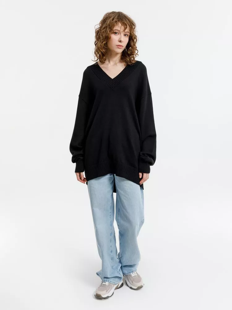 Плотный джемпер Stillan со спущенной линией плеча и глубоким V-образным вырезом — воплощение стиля и яркий акцент всего образа для искушенных и тех, кто не против слегка пересмотреть классику.
