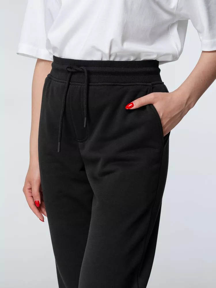 Cпортивные брюки-джоггеры унисекс из органического хлопка и переработанного полиэстера. Два боковых кармана, задний накладной карман. Эластичный пояс с утягивающим шнуром. Манжеты по низу изделия. Внутренняя сторона с начесом.