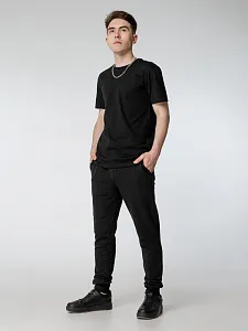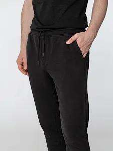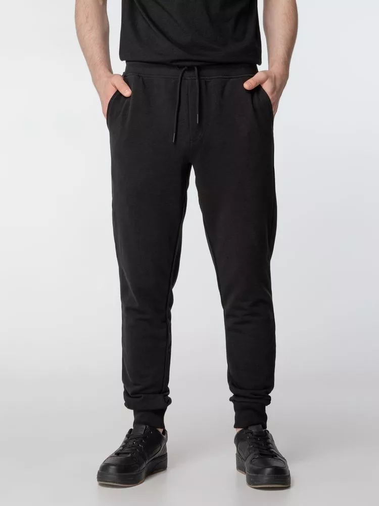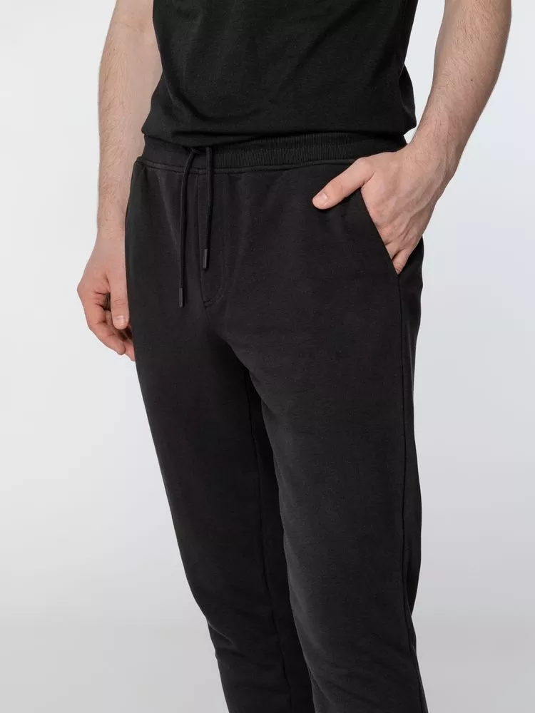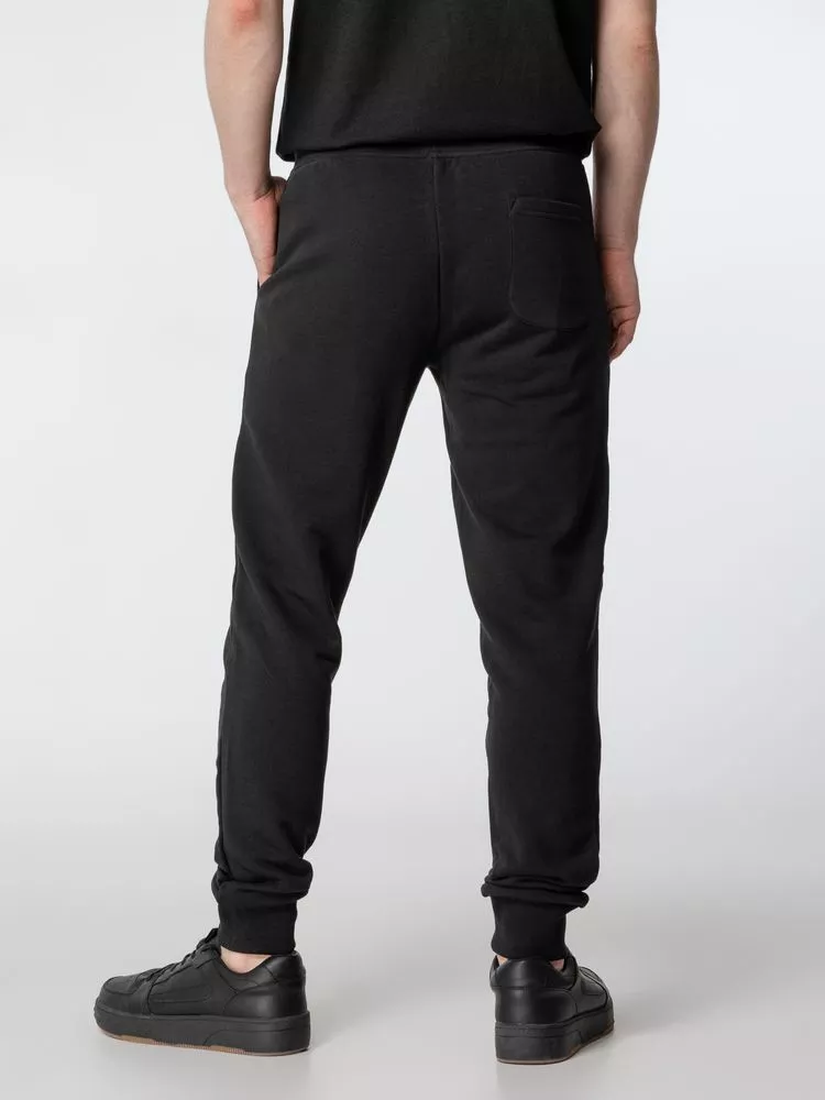 Мужские спортивные брюки-джоггеры из органического хлопка и переработанного полиэстера. Два боковых кармана, задний накладной карман. Эластичный пояс с утягивающим шнуром. Манжеты по низу изделия. Внутренняя сторона без начеса.