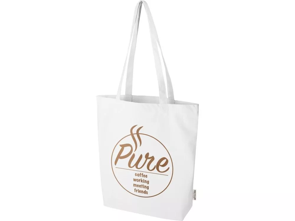 Эко-сумка Florida с широким дном, изготовленная из 100% переработанного хлопка, сертифицированного согласно GRS, плотностью 270 г/м², станет более ответственным и долговечным выбором для ваших повседневных нужд. Благодаря широкому дну в нем предусмотрено дополнительное место для самых необходимых вещей на любой случай — от похода по магазинам до повседневной прогулки. Длина ручки: 30 см. Объем: 10 литр. Хлопок.