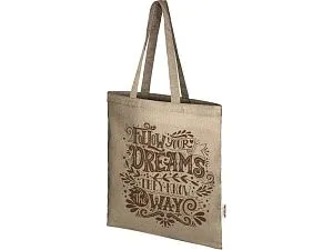 Эко-сумка из смеси переработанного хлопка и полиэстера плотностью 150 г/м². Эта сумка легко складывается, чтобы поместиться в небольшом пространстве, и является идеальным компаньоном для различных занятий, таких как покупка продуктов, однодневные поездки или поделки. Вторичный хлопок изготавливается из отходов, предназначенных для потребления, которые производятся текстильными фабриками в процессе резки. Подобные цвета смешиваются вместе, поэтому дополнительная окраска не требуется. Из-за особенностей переработанного хлопка возможны незначительные отклонения в цвете. Благодаря этому изделие выглядит более аутентичным. Каждая сумка также поставляется с индикатором Aware™. Эта инновационная функция позволяет пользователям отслеживать происхождение и путь своего товара с помощью QR-кода, повышая прозрачность цепочки поставок и способствуя более прочной связи между продуктом и процессом его производства. Прочность до 5 кг. Длина ручки: 31 см. 80% Recycled cotton, 20% Переработанный Полиэстер.