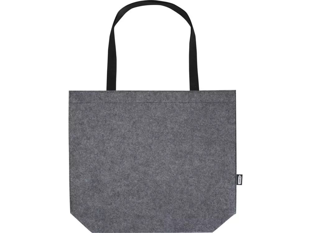 Большая эко-сумка с широким дном и боками из мягкого и прочного высококачественного переработанного фетра, сертифицированного согласно GRS. Сумка имеет большое основное отделение с объемом (до 20 литров), усиленные тканые хлопковые ручки (30 x 2,5 см) для оптимального удобства переноски и застежку-кнопку в верхней части. GRS certified recycled polyester.