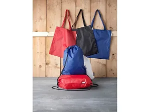 Прочный рюкзак, изготовленный на 100% из переработанного пластика, предназначенного для повторного использования, что способствует уменьшению количества пластиковых отходов. Имеет две ручки, высота в раскрытом состоянии — 27 см. Выдерживает вес до 10 кг.