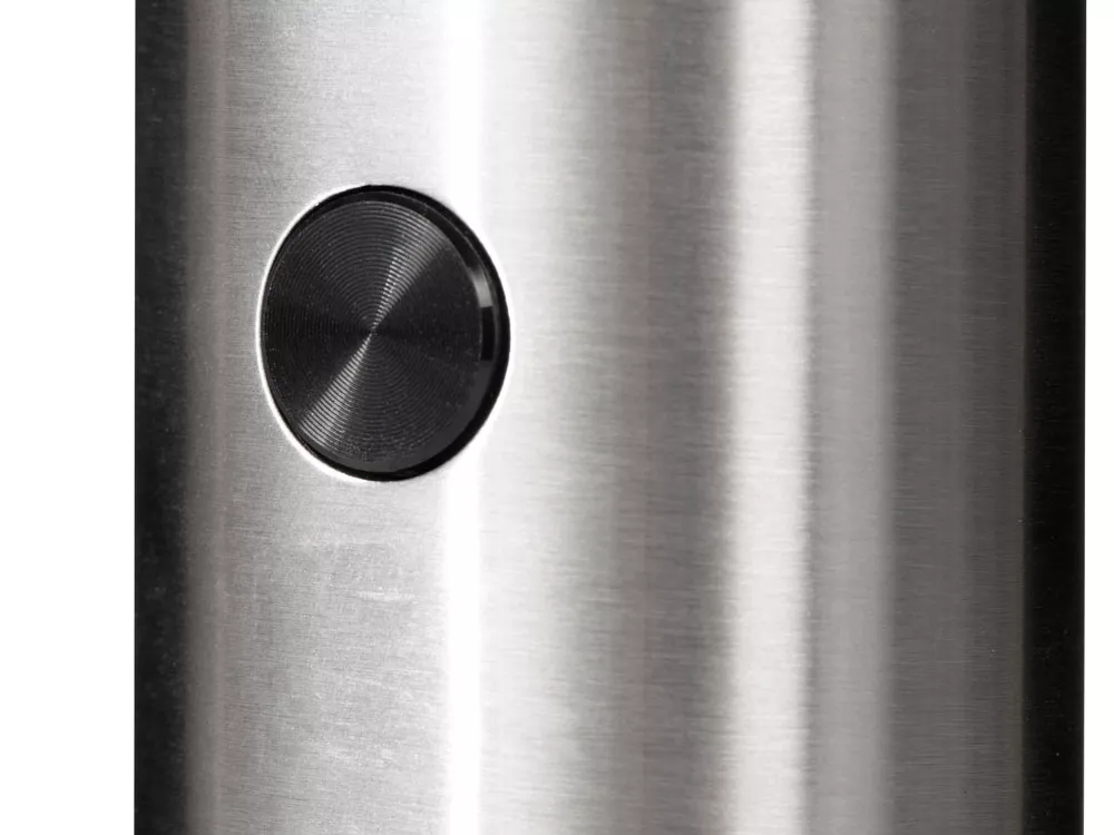Электрическая мельница Grind от Eat&Bite Select подходит для измельчения крупной соли, перца и других специй, например, таких как гвоздика, тмин или кориандр. Для этого достаточно просто нажать на круглую кнопку на корпусе устройства. Преимуществом добавления в блюда только что смолотых пряностей является сохранение их вкуса и аромата, которые не потеряются в процессе длительного хранения в уже измельчённом виде. Grind позволяет удобно регулировать степень помола: на нижней части мельницы есть рычаг, позволяющий выбрать один из пяти возможных вариантов — от грубого до мелкого. Прозрачная крышка на передней части предназначена для насыпания специй, а также через неё вы всегда будете видеть содержимое и сколько его осталось. Наличие LED подсветки позволяет точно контролировать количество добавляемых в блюдо соли или приправ. Grind выполнена из стали и АБС-пластика и работает от 4-х батареек типа ААА (не входят в комплект). Жернова изготовлены из керамики и устойчивы к коррозии. • Удобная круглая кнопка включения • Регулирование грубости помола • LED подсветка • Корпус из стали и АБС-пластика • Керамические жернова, устойчивые к коррозии • Ёмкость контейнера 70 мл • Работает от 4-х батареек типа ААА Гравировка (оптоволоконный лазер) (Без чернения) на данный товар осуществляется бесплатно. Оплачивается только настройка оборудования в размере 1000 рублей на весь тираж.