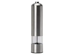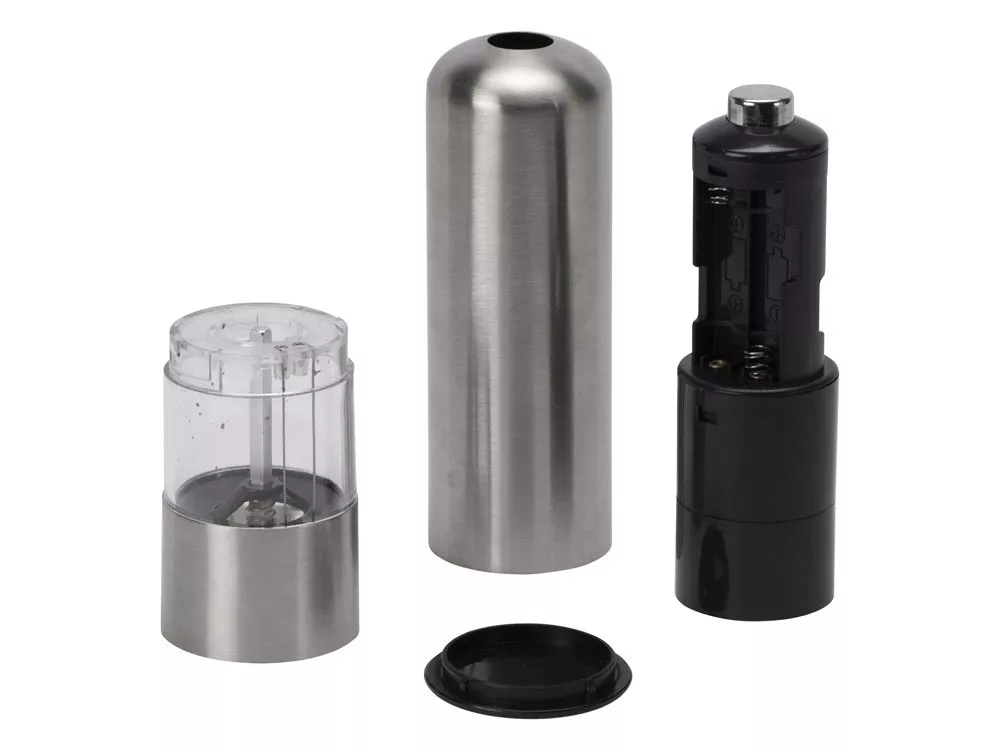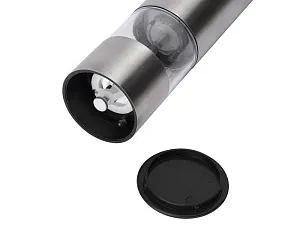 Электрическая мельница Fresh mix от Eat&Bite подходит для измельчения крупной соли, перца и других специй. Для этого достаточно просто нажать на кнопку на корпусе устройства. Преимуществом добавления в блюда только что смолотых специй является сохранение их вкуса и аромата, которые не потеряются в процессе длительного хранения в уже измельчённом виде. Fresh mix позволяет удобно регулировать степень помола от грубого до мелкого с помощью винтового механизма под ёмкостью в нижней части мельницы. Благодаря прозрачной вставке вы всегда будете видеть содержимое и сколько его осталось. Наличие LED подсветки позволяет точно контролировать количество добавляемых в блюдо специй. Fresh mix работает от 4-х батареек типа АА (не входят в комплект). Жернова изготовлены из керамики и устойчивы к коррозии. • Удобная кнопка включения • Регулирование грубости помола • LED подсветка • Керамические жернова, устойчивые к коррозии • Работает от 4-х батареек типа АА Гравировка (оптоволоконный лазер) (Без чернения) на данный товар осуществляется бесплатно. Оплачивается только настройка оборудования в размере 1000 рублей на весь тираж.