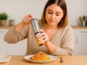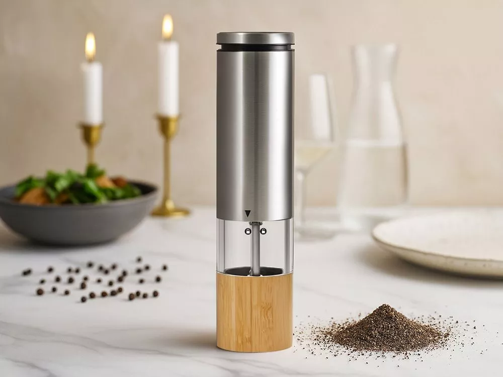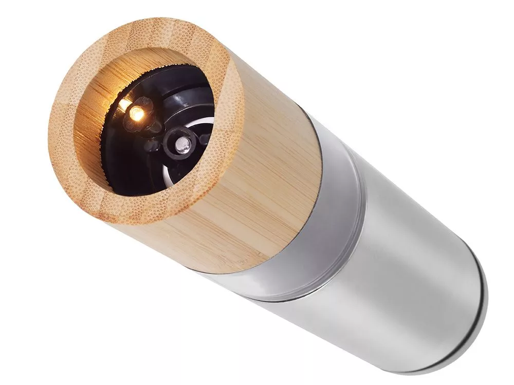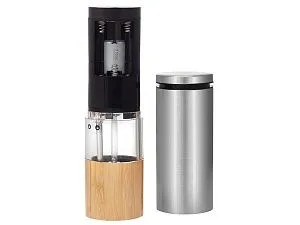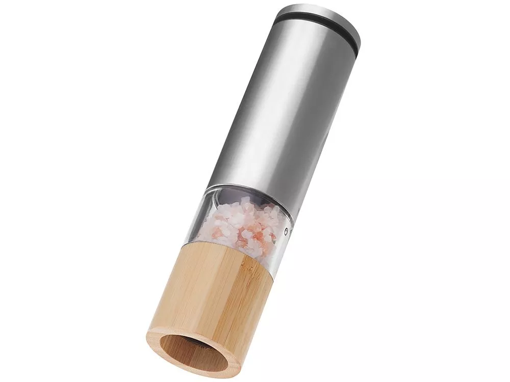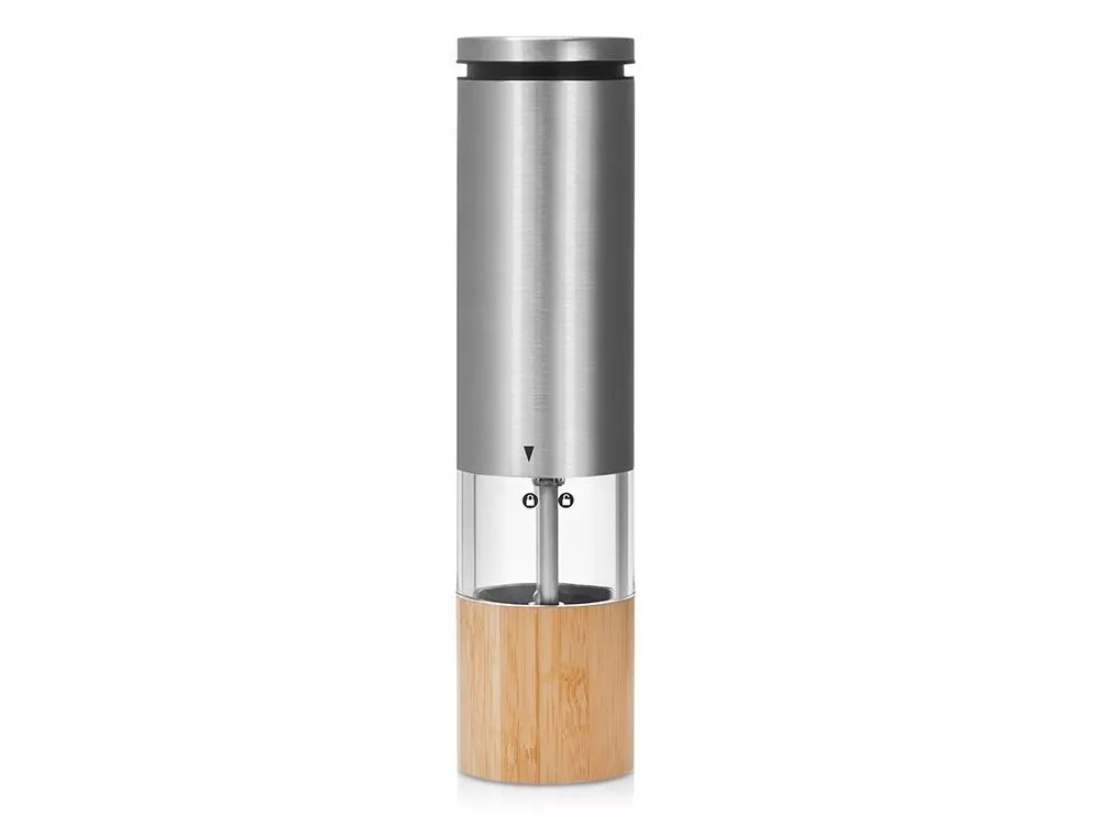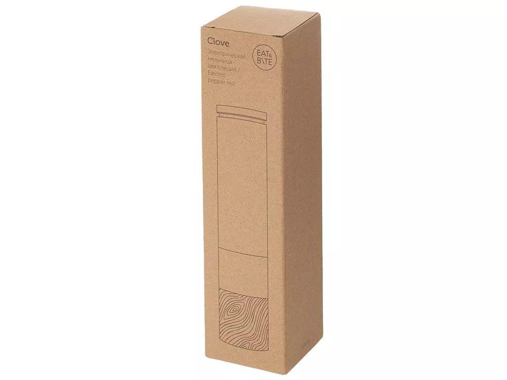 Электрическая мельница для специй Clove из нержавеющей стали и бамбука: стиль и удобство на вашей кухне! Элегантный и практичный корпоративный подарок, который добавит вкуса в любую кухню — электрическая мельница для специй, сочетающая трендовый дизайн и современную функциональность. Работает от 6 батареек AAA и легко справляется с солью, перцем и другими специями. - Универсальное применение: подходит для перца, соли и любых сухих специй - Прозрачная секция корпуса: всегда видно, сколько продукта осталось - Работа от 6 батареек AAA: никаких проводов — удобно дома и на даче - Механизм помола одним нажатием: свежемолотые специи — быстро и без усилий - Объём 30г: оптимально для ежедневного использования - Материалы премиум-класса: благородный бамбук, нержавеющая сталь и прочный прозрачный пластик Мельница легко впишется как в современный интерьер, так и в более классическую обстановку, делая ее отличным подарком для коллег, партнёров и клиентов, который точно не останется без внимания.