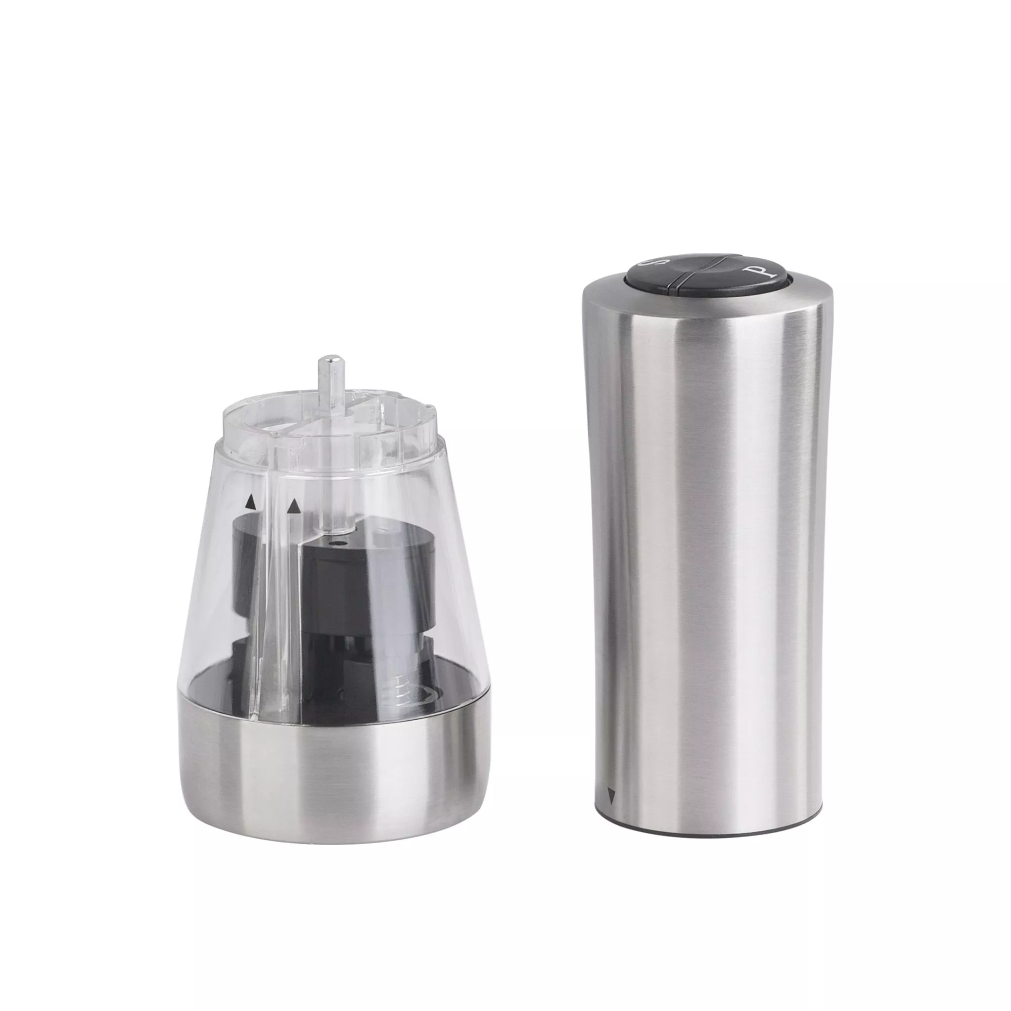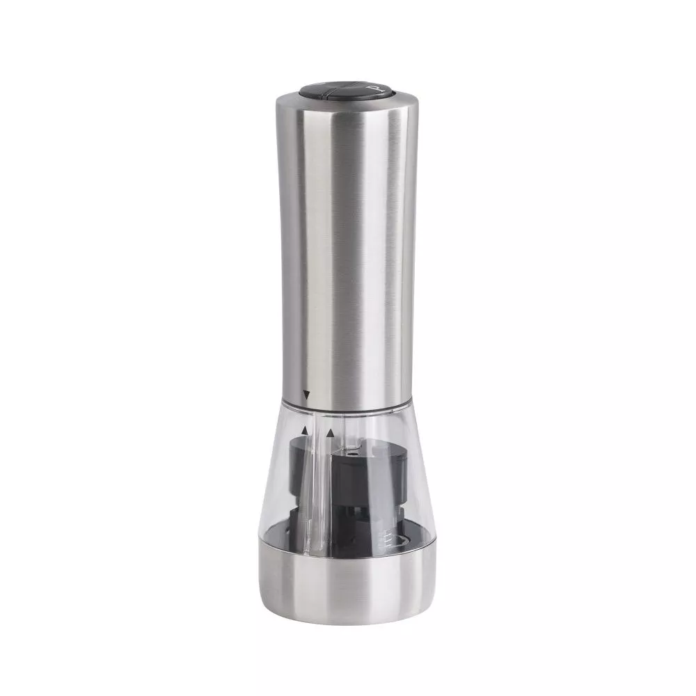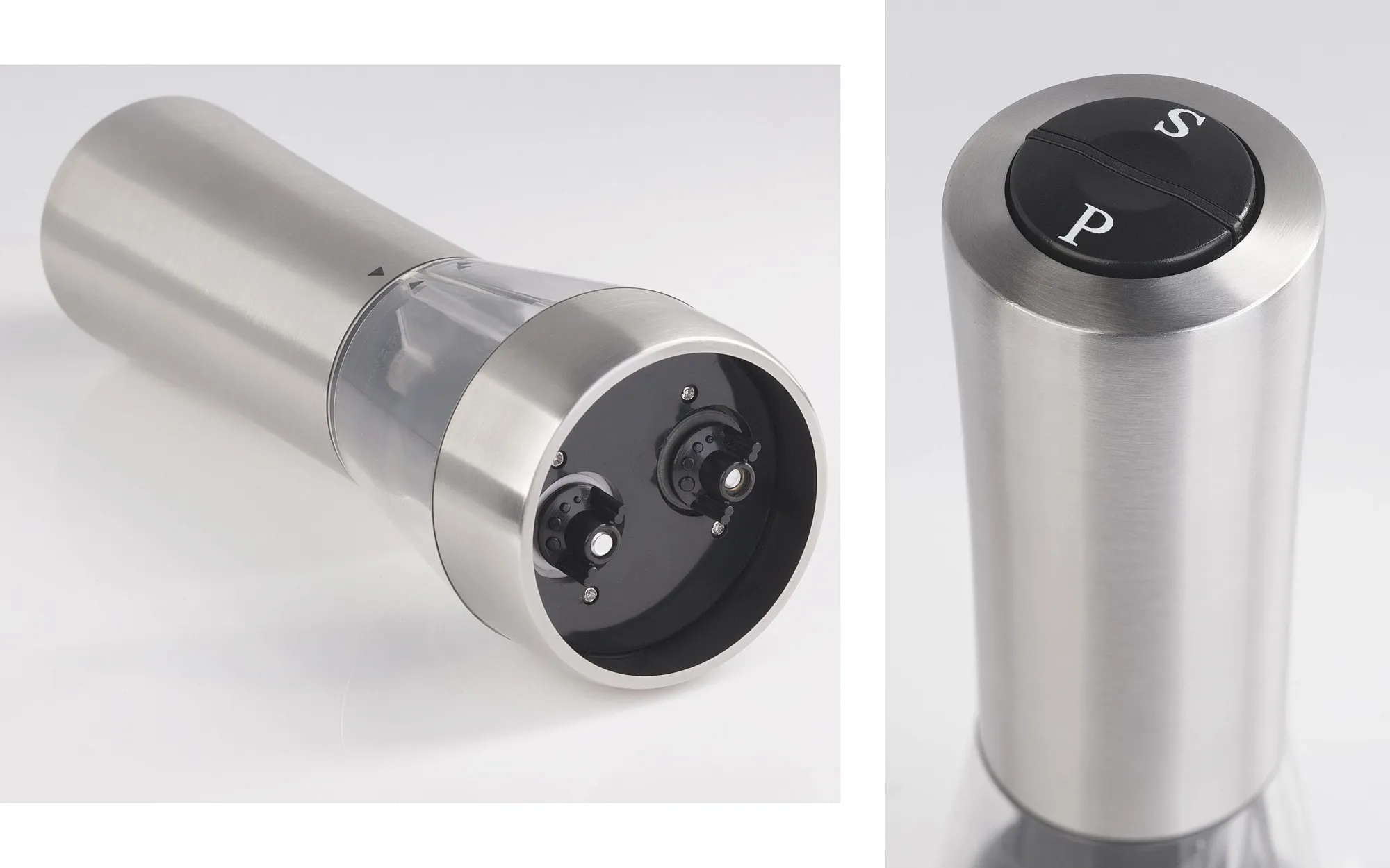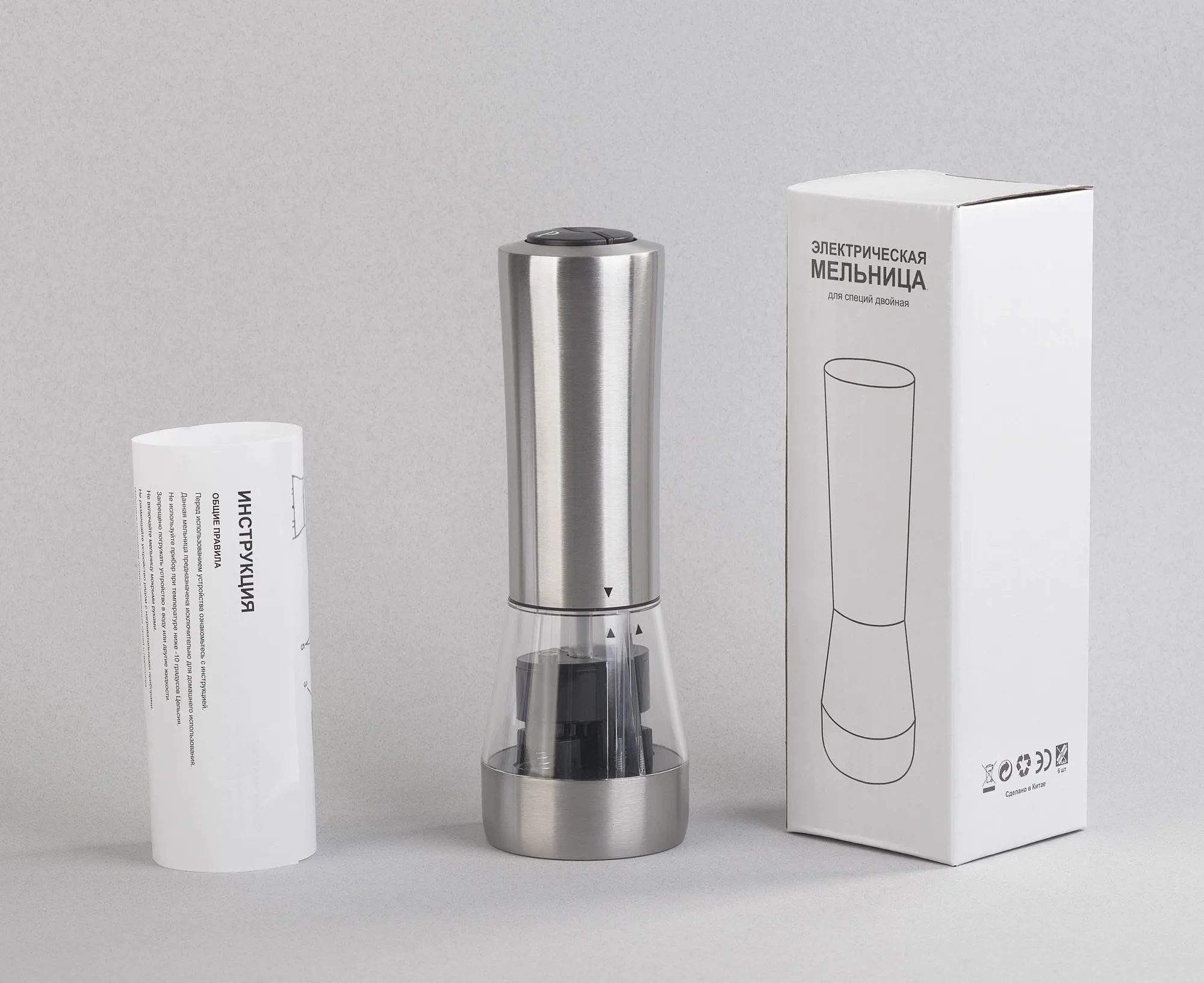 Электрическая мельница "Salt&Pepper" находка для любителей готовить. Двойной отсек позволяет разделить приправы. Корпус выполнен из пищевой нержавеющей стали, жернова из керамики. Степень помола можно регулировать. Работает от батареек ААА 6 шт. (не комплектуются)