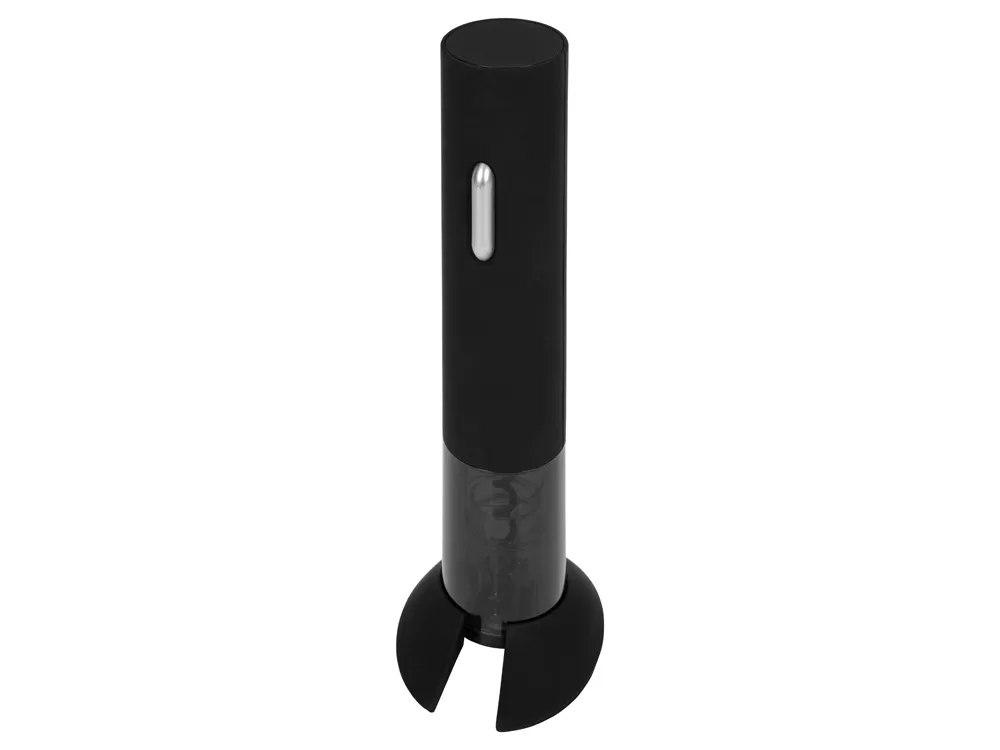 Электрический штопор – незаменимый подарок для ценителей вина. Его корпус выполнен из пластика с тактильно приятным покрытием soft touch. На штопор можно нанести логотип компании. В комплектации: штопор, подставка, инструкция по использованию. Батарейки в комплект не входят. • Подставка для штопора дополнена ножом, предназначена для срезания фольги с горлышка винной бутылки; • пробка выкручивается с помощью нажатия всего одной кнопки; • скорость открывания – 7 секунд; • работает на батарейках АА (4 шт.); • уровень шума до 65 Дб; • диаметр пробки: 18-24 мм; • наружный диаметр бутылки не более 40 мм; • поставляется в брендированной коробке с шубером. Нижняя и верхняя часть одной и той же кнопки отвечают за спуск и поднятие спирали, которая вытаскивает пробку из бутылки.