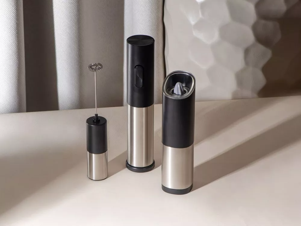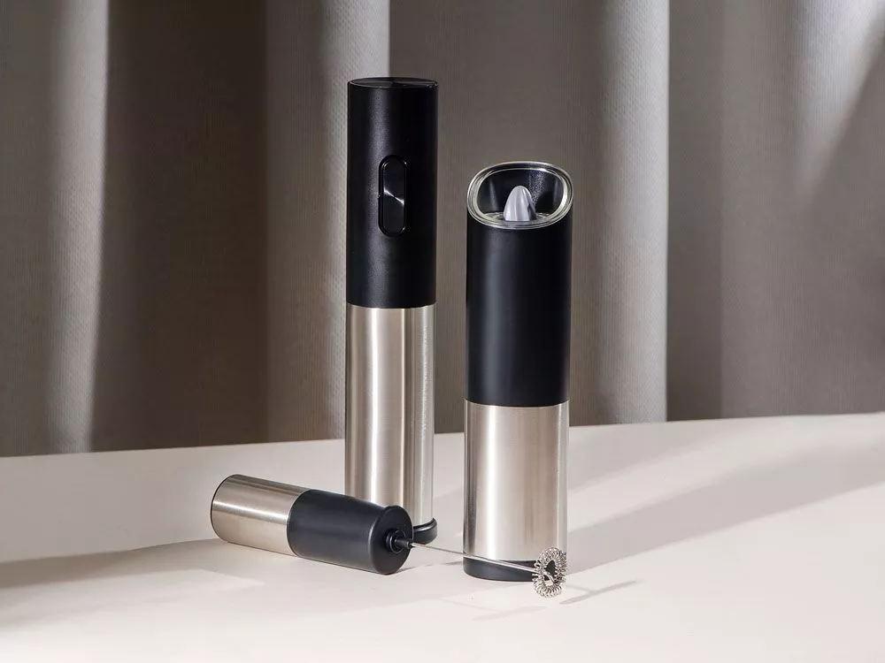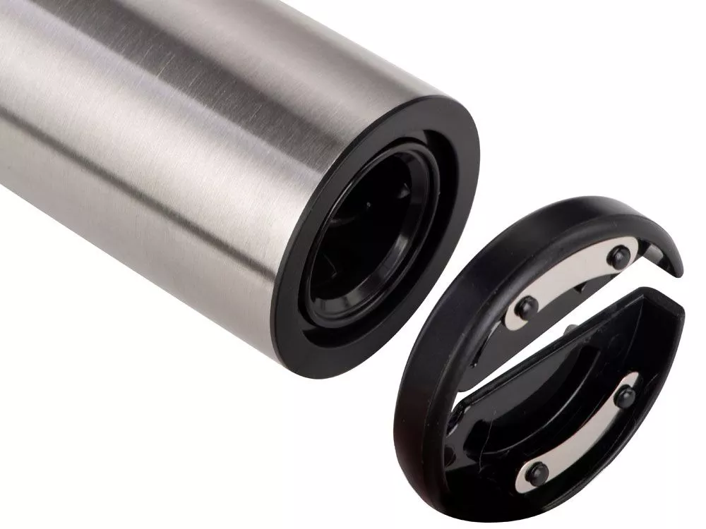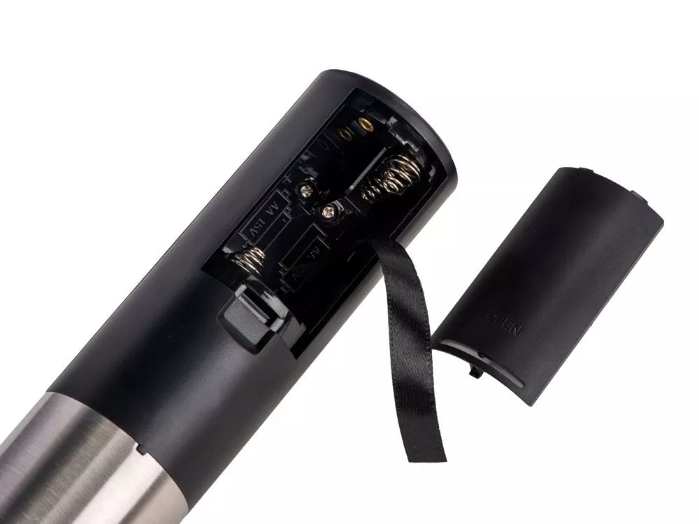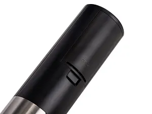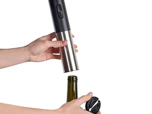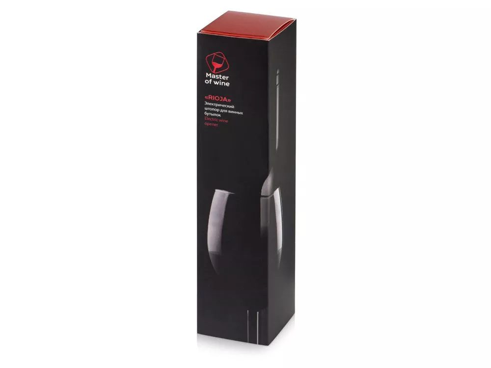 Электрический штопор RIOJA бренда Master of Wine — прекрасный подарок любителю вина: эта модель поставляется в элегантной упаковке в комплекте с подставкой, которая также может выступать в роли ножа для фольги. Благодаря устойчивой и функциональной подставке штопор всегда будет под рукой, а внешний вид Rioja станет настоящим украшением барной стойки или кухни. Верхняя часть корпуса выполнена из матового пластика, который легко очищается от загрязнений влажной тканью. Тактильно приятный текстурный материал для удобства использования. Кнопки спуска и поднятия штопора визуально выглядят как одна большая кнопка, при нажатии на нижнюю часть которой спираль вкручивается в пробку по часовой стрелке, а при нажатии на верхнюю — освобождает пробку, вращаясь в противоположном направлении. От пользователя требуется лишь правильно расположить штопор на пробке и нажать на кнопку. Модель работает от 4 батареек АА, не имеет внутреннего аккумулятора. Батарейки не прилагаются в комплекте. - подставка с функцией ножа для фольги в комплекте - легко откупоривает вино - эргономичное строение: спираль полностью спрятана в корпусе, что обеспечивает долгий срок службы и защищает от порезов по неосторожности - дизайн продолжает общий стиль Master of Wine, можно сочетать с другими товарами бренда для создания сета - украсит собой любую кухню, благодаря подставке можно разместить удобным образом - понятная инструкция на русском языке в комплекте Rioja предназначен для пробок диаметром 20-24 мм и высотой до 44 мм. Внешний диаметр горлышка бутылок не должен превышать 35 мм, внутренний — быть в диапазоне от 17,5 до 23 мм. Гравировка (оптоволоконный лазер) (Без чернения) на данный товар осуществляется бесплатно. Оплачивается только настройка оборудования в размере 950 рублей на весь тираж.