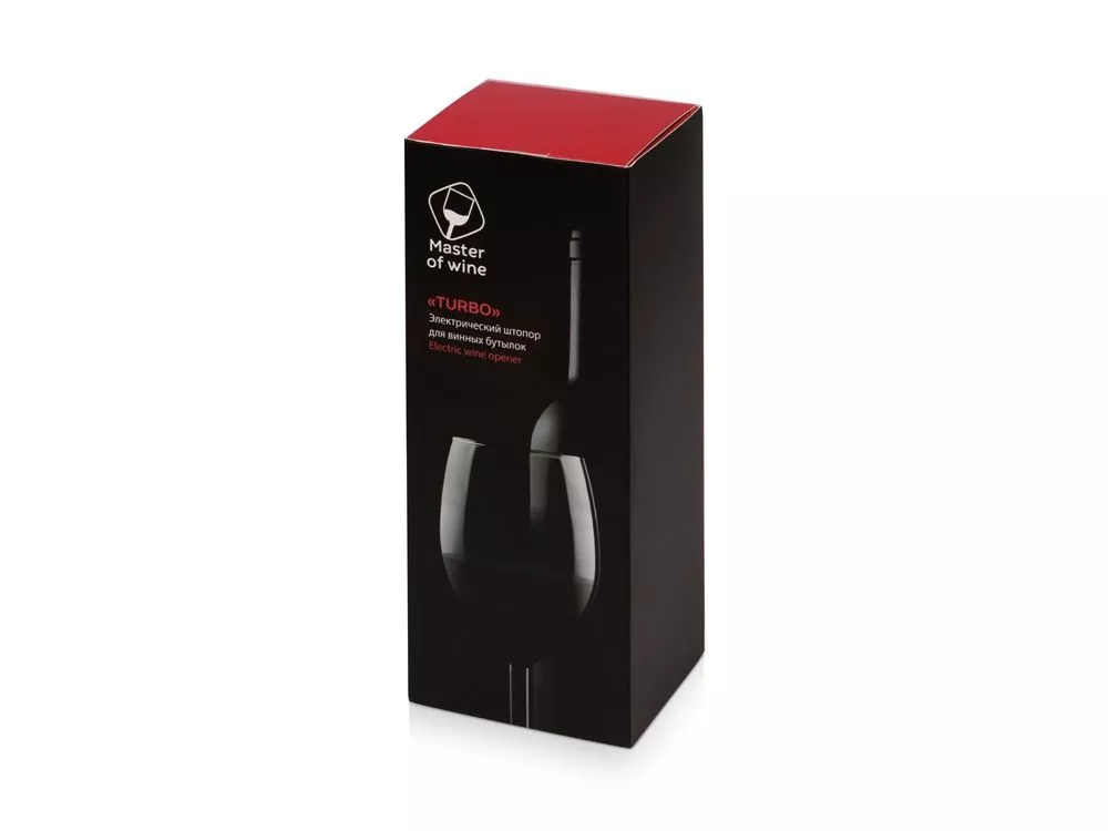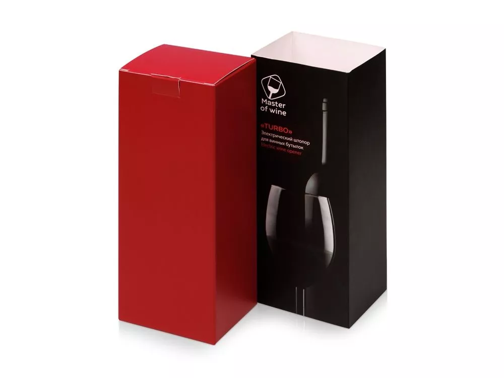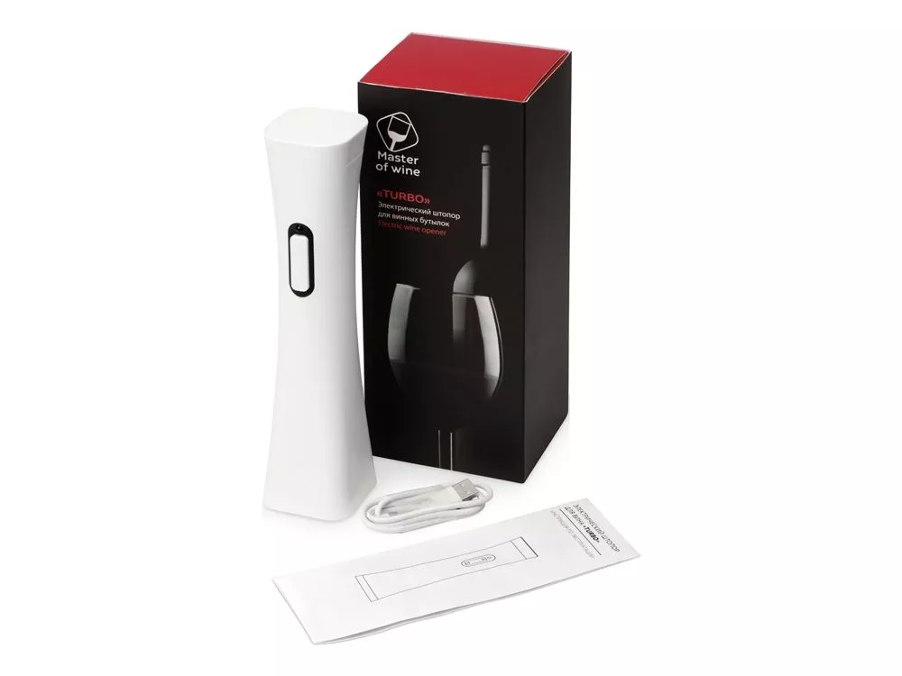Потрясающе полезный и впечатляющий подарок ценителям вин - электрический штопор Turbo. С ним всегда легко и просто! Всего 7 секунд и пару нажатий - и бутылка вина откупорена! В комплектации: штопор, нож для обрезания фольги, инструкция по использованию, USB кабель. • Штопор дополнен ножом, предназначенным для срезания фольги с горлышка винной бутылки; • пробка выкручивается с помощью нажатия всего одной кнопки; • скорость открывания – 7 секунд; • питание: литиевый аккумулятор; • уровень шума до 65 Дб; • диаметр пробки: 18-23 мм; • наружный диаметр бутылки не более 35 мм; • поставляется в брендированной коробке с шубером; •емкость аккумулятора 800M mAh; •продолжительность работы: до 60 бутылок на одной зарядке; •8 часов для полной подзарядки штопора; •наличие индикатора уровня заряда. Нижняя и верхняя часть одной и той же кнопки отвечают за спуск и поднятие спирали, которая вытаскивает пробку из бутылки. Тампопечать (1 цвет (белые изделия)) на данный товар осуществляется бесплатно. Оплачивается только настройка оборудования в размере 2300 рублей на весь тираж.