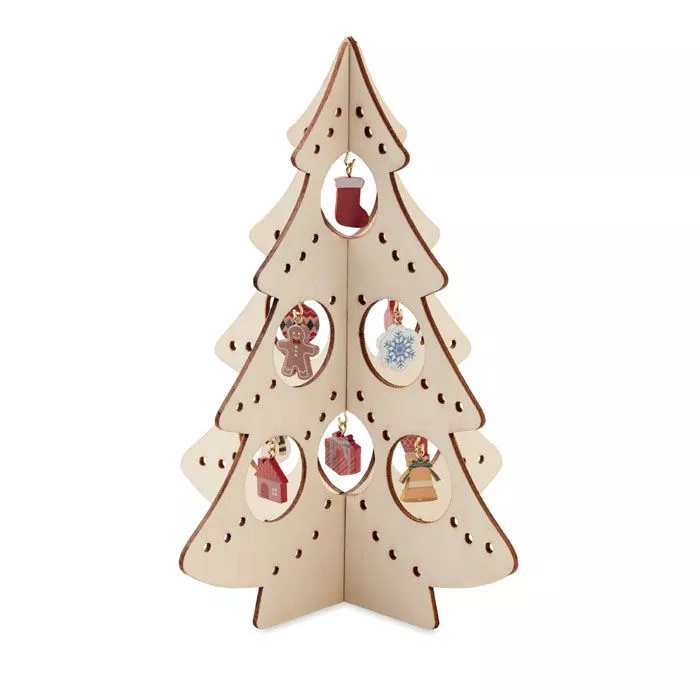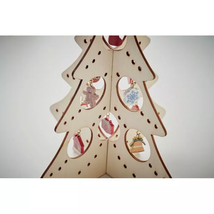 Фанерная силуэтная елка с 10 различными украшениями. Требуется сборка.
