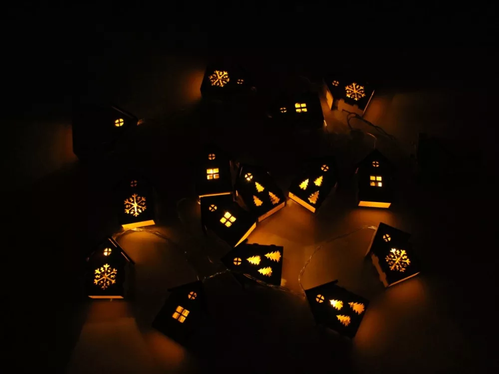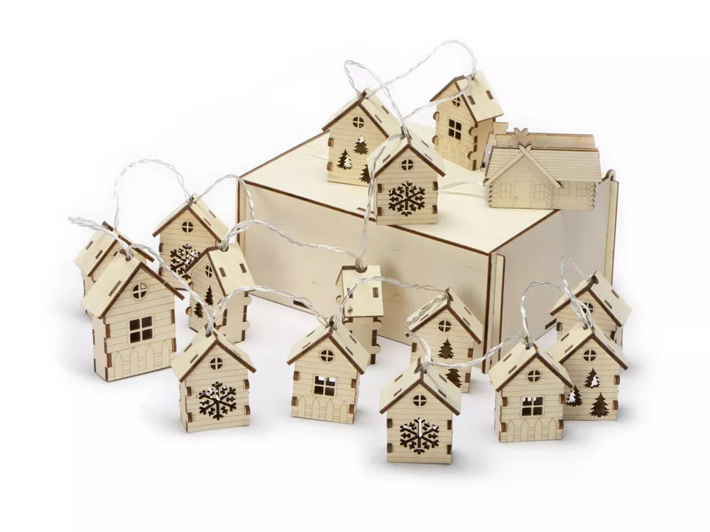 Светодиодная новогодняя елочная гирлянда постоянного свечения с домиками из натуральной березовой фанеры. Работает от 2-х батареек АА (в комплекте). Упакована в деревянную подарочную коробку со стружкой. Гравировка (Без чернения) на данный товар осуществляется бесплатно. Оплачивается только настройка оборудования в размере 500 рублей на весь тираж.