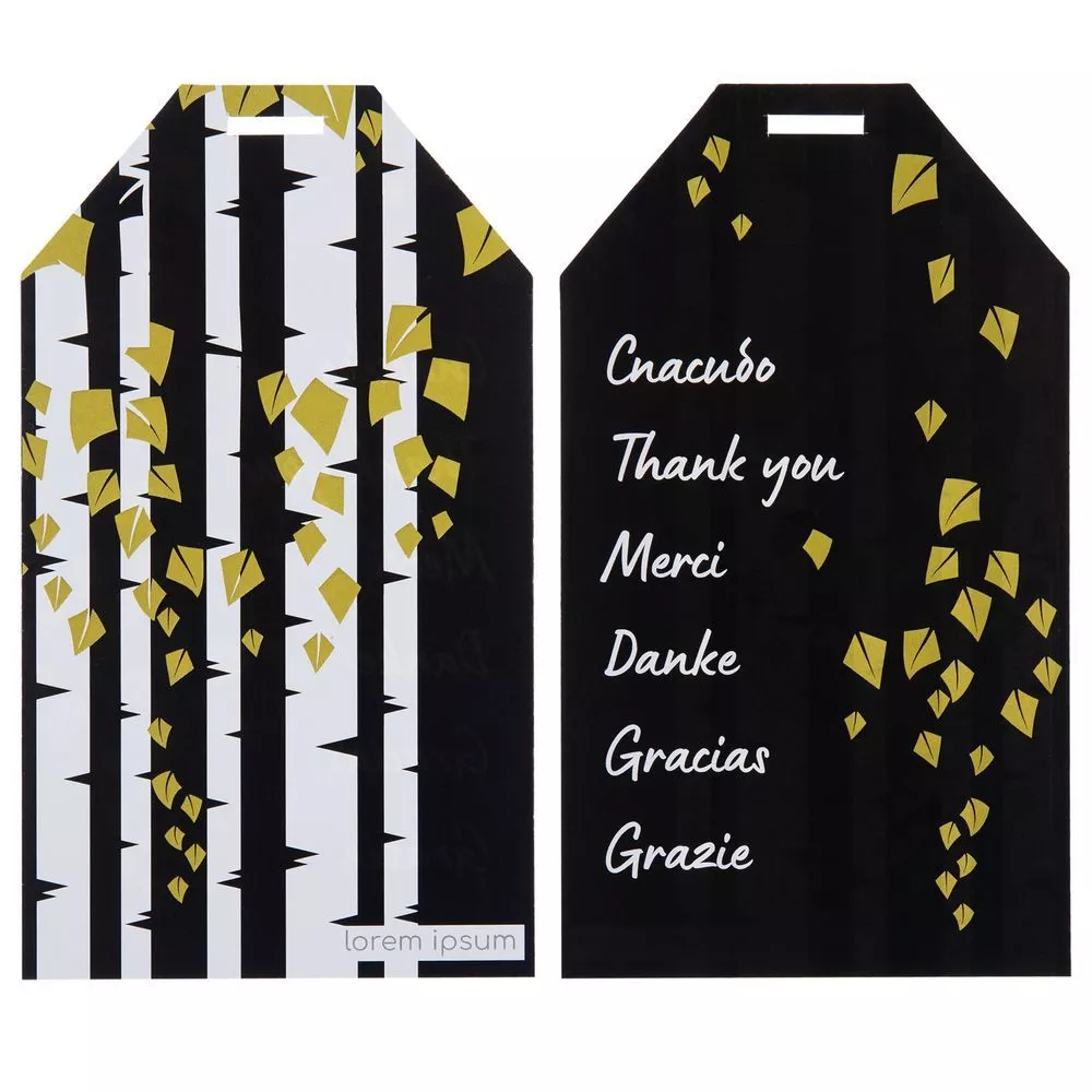 - Чтобы получить открытку или этикетку-книжку, можно сделать биговку и сложить изделие пополам — укажите это в макете
