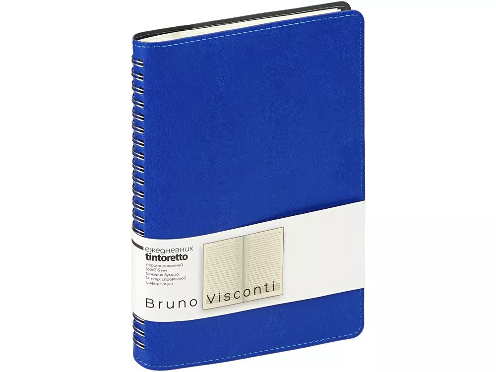 Недатированный ежедневник формата А5 Tintoretto ТМ Bruno Visconti - практичное решение для тех, кто любит ежедневники на пружине. Полускрытый гребень позволяет держать ежедневник открытым на столе и комфортно вести записи. 272 страницы блока произведены из превосходной бежевой бумаги плотностью 70 г/кв.м, а неброская линовка каждой страницы позволяет не отвлекаться на лишние детали. Гибкую обложку из искусственной кожи украшает отстрочка декоративной нитью по краю.