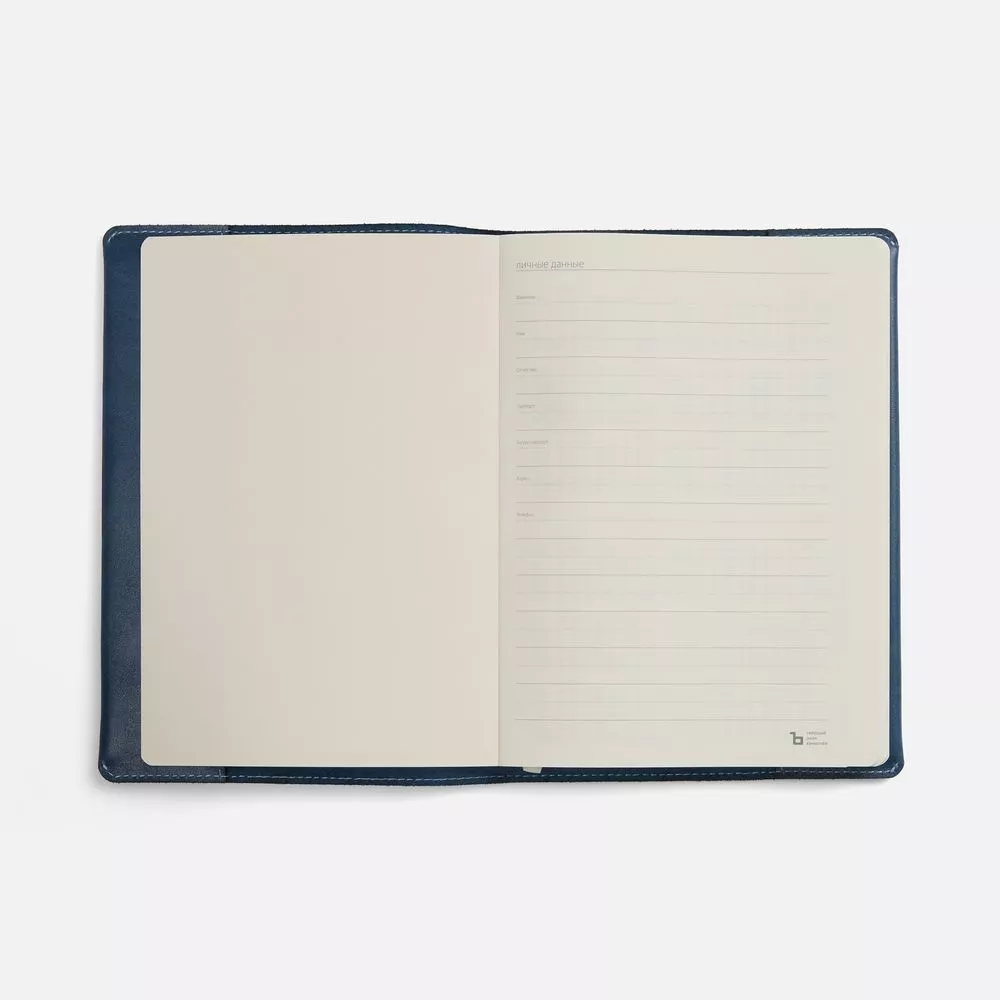 Ежедневник в мягкой суперобложке из натуральной кожи. Дополнен ляссе белого цвета. Упакован в индивидуальную коробку.