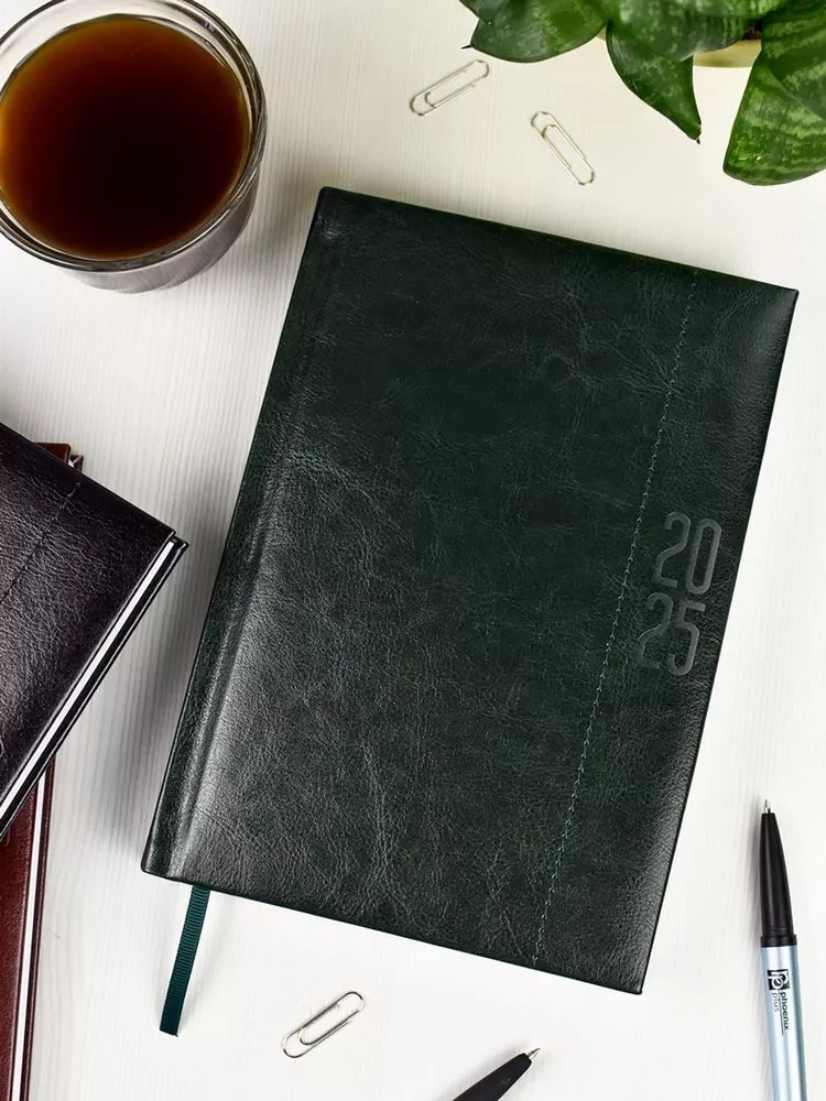 Ежедневник с твердой обложкой с поролоном из искусственной кожи Sarif, дополнен декоративной строчкой, капталом и ляссе в цвет ежедневника.
