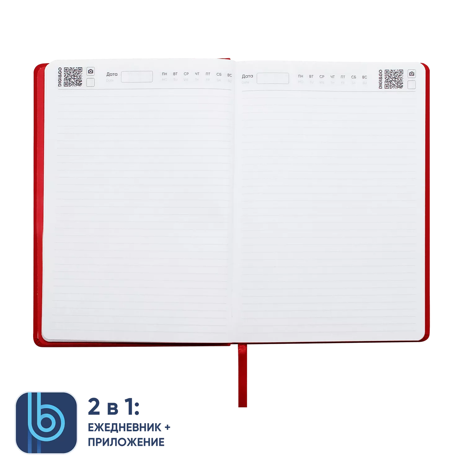 DIGI – фотоснимок страницы ежедневника. На каждой странице ежедневника расположен QR код, который открывает режим камеры сразу в приложении. Остается только нажать кнопку.