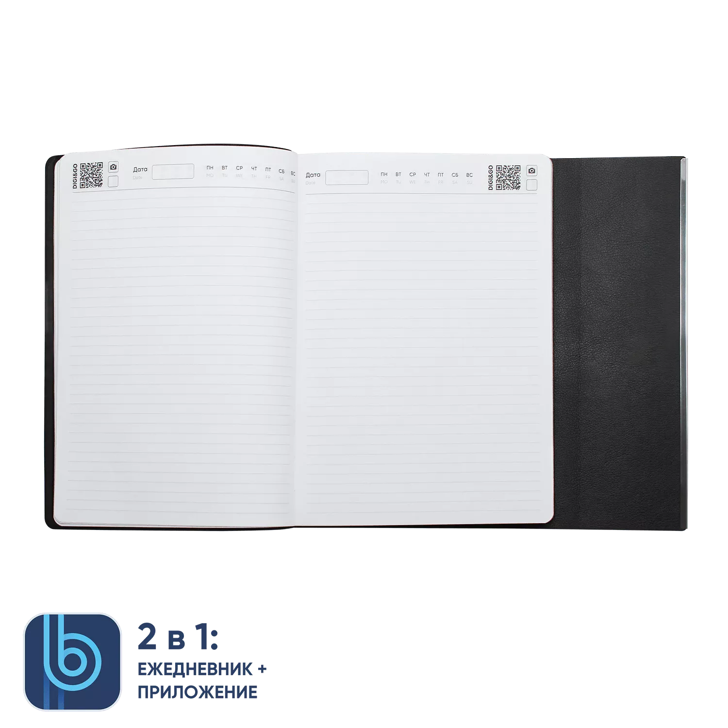 DIGI – фотоснимок страницы ежедневника. На каждой странице ежедневника расположен QR код, который открывает режим камеры сразу в приложении. Остается только нажать кнопку.