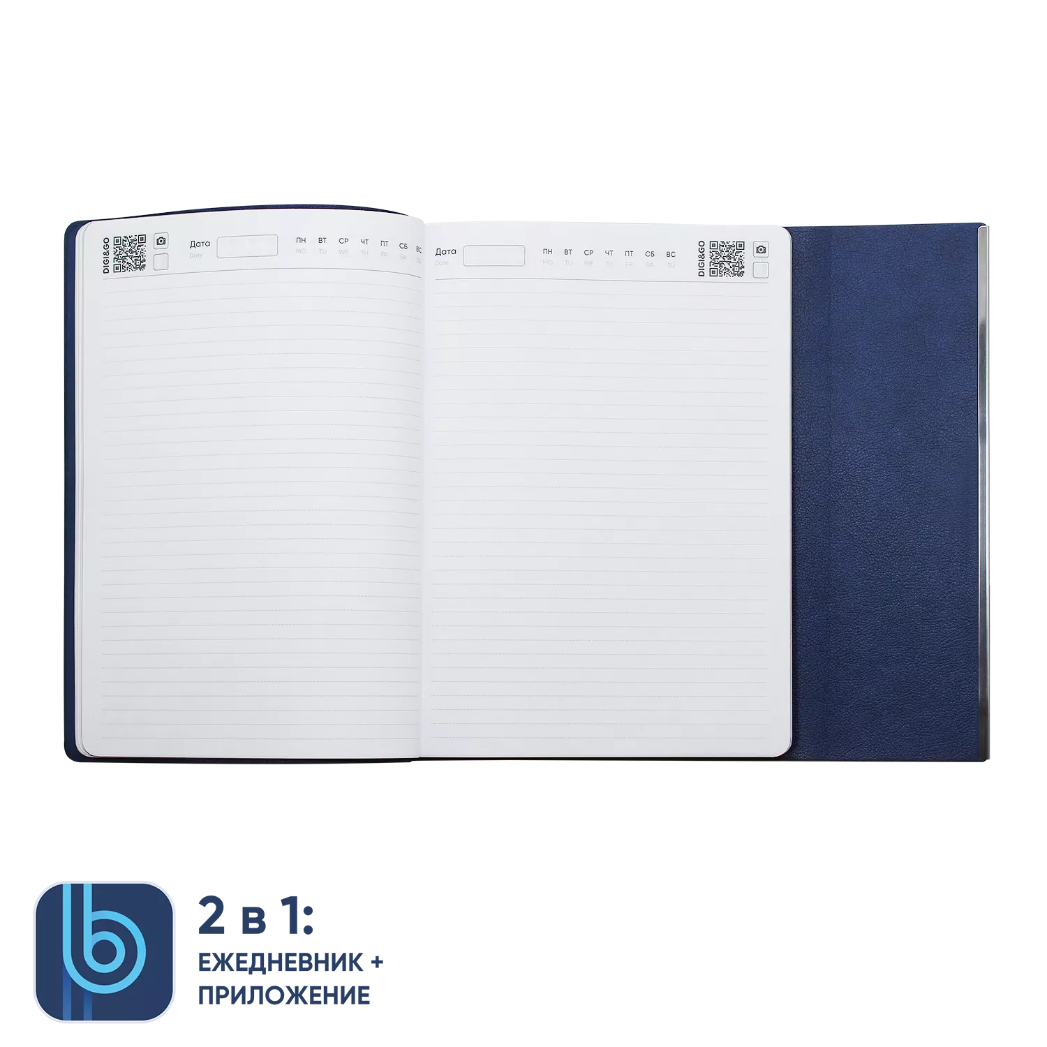 DIGI – фотоснимок страницы ежедневника. На каждой странице ежедневника расположен QR код, который открывает режим камеры сразу в приложении. Остается только нажать кнопку.