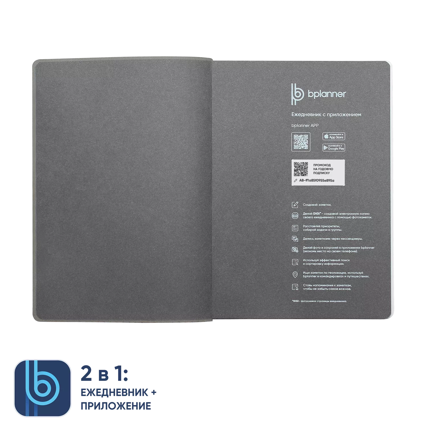 Bplanner – это первый российский ежедневник с приложением. Приложение помогает быстро оцифровать и сохранить данные из ежедневника. Ежедневник и приложение к нему производятся в России.