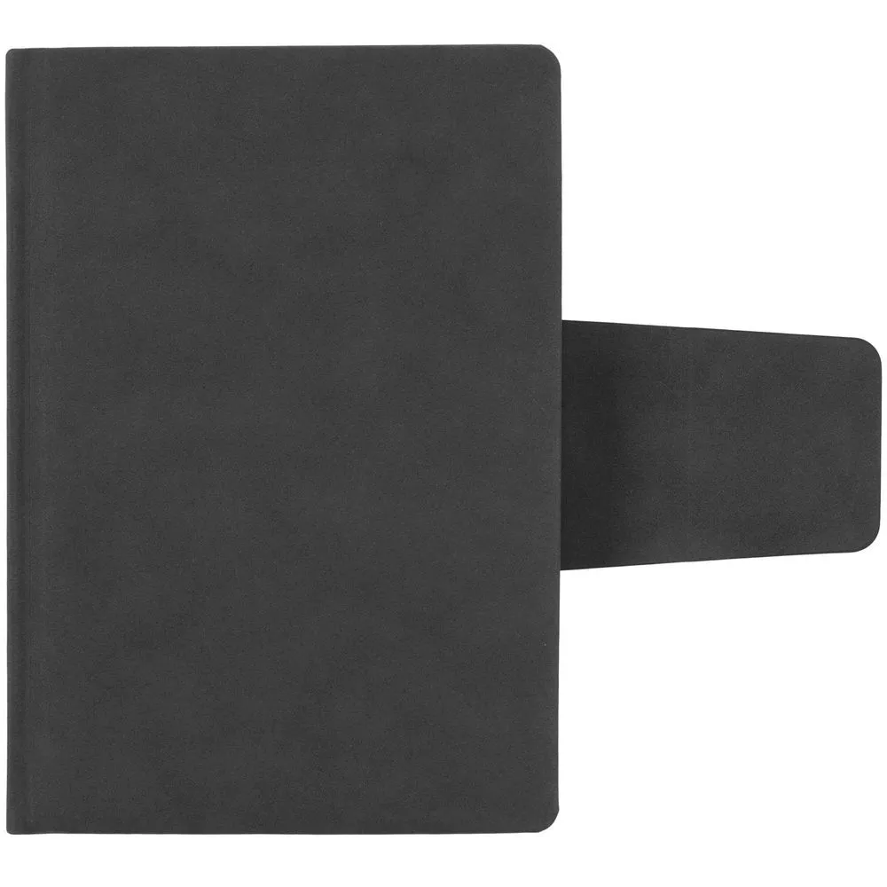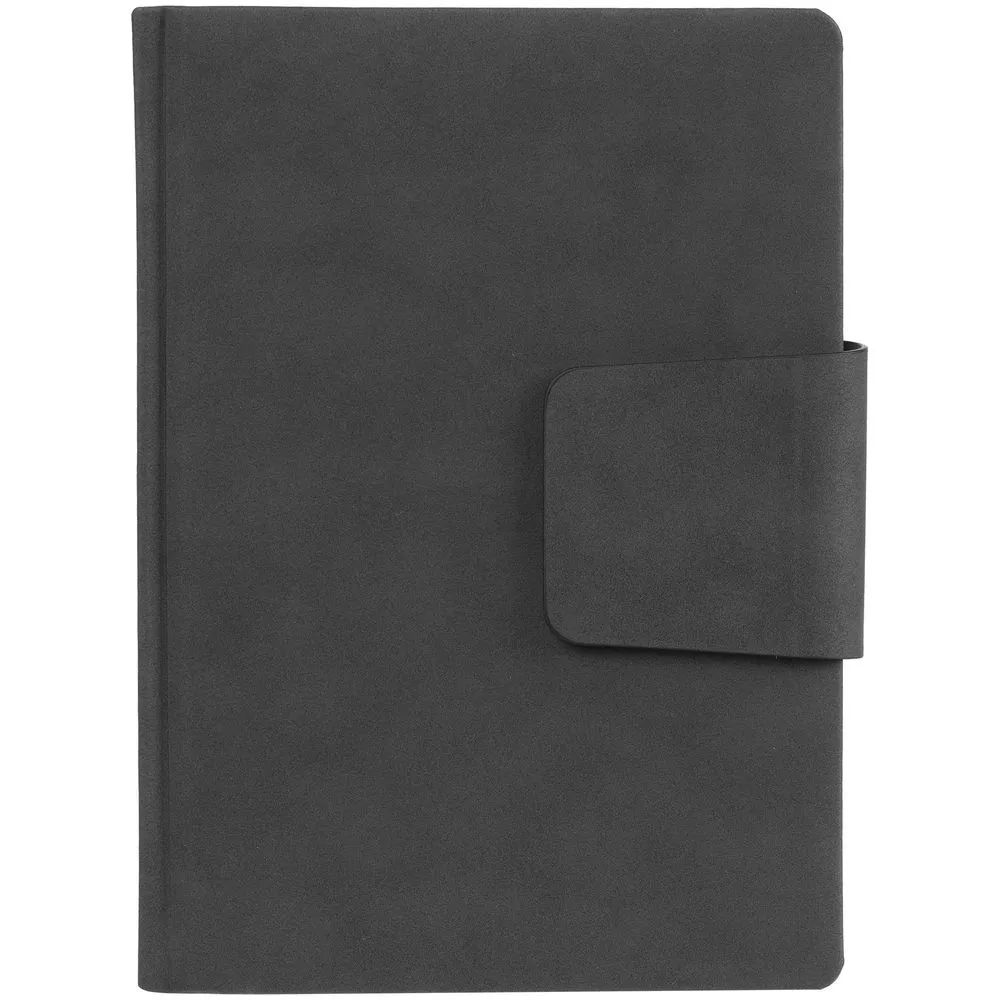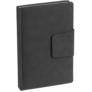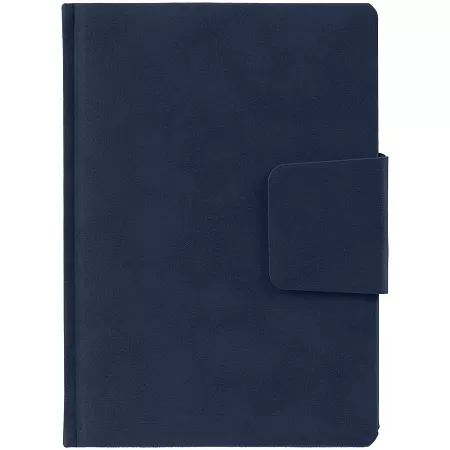 Ежедневник с твердой обложкой c поролоном, выполнен из материала Nubuck, темно-синий ХХ, дополнен капталом и ляссе темно-синего цвета. Застежка — хлястик на магните.